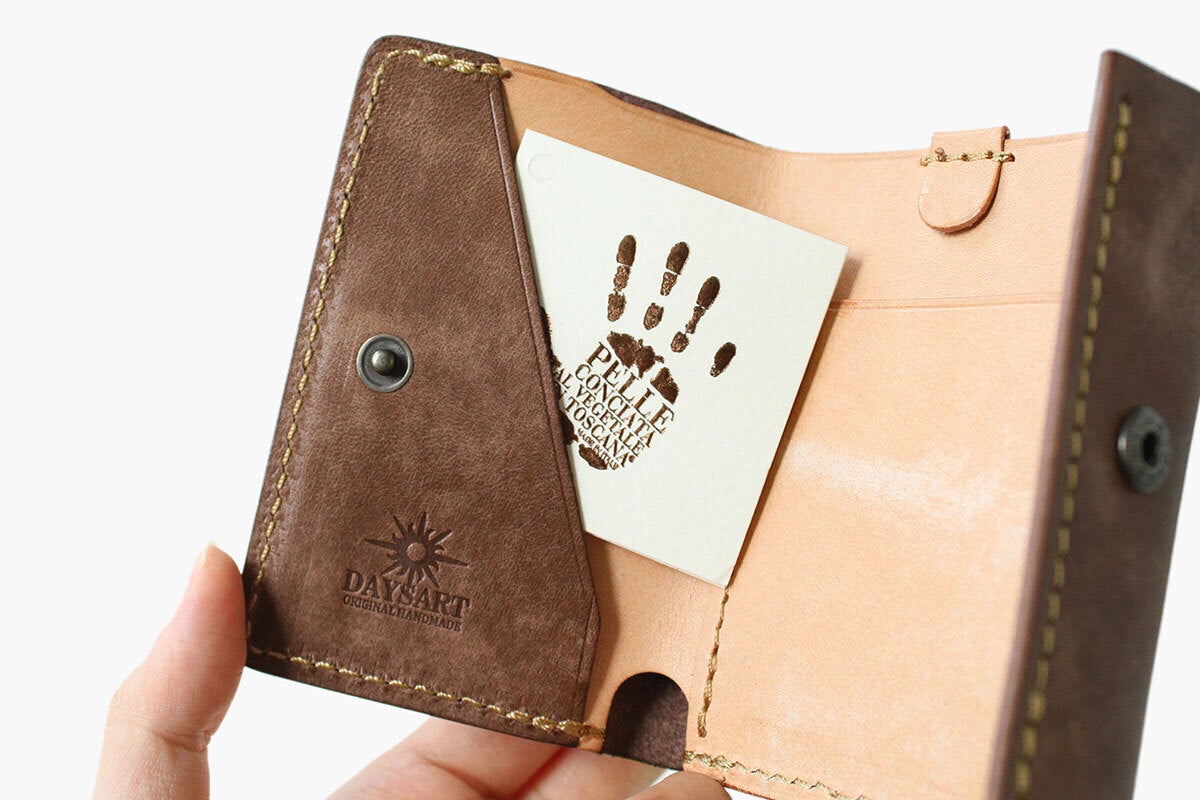 元々2㎜厚の革を敢えて1㎜厚まで薄く加工することで革本来のしなやかさと軽さを体現頂けます。