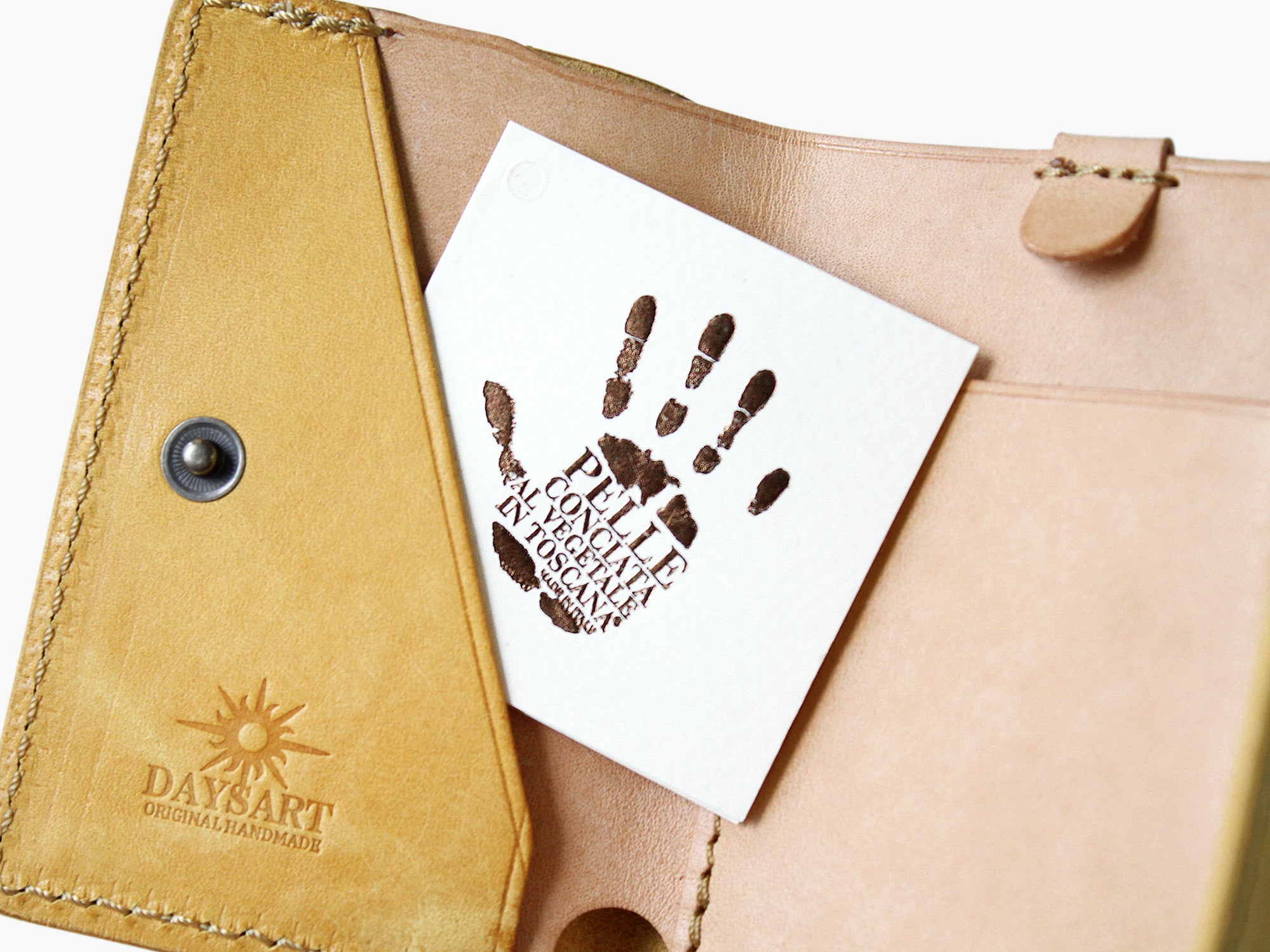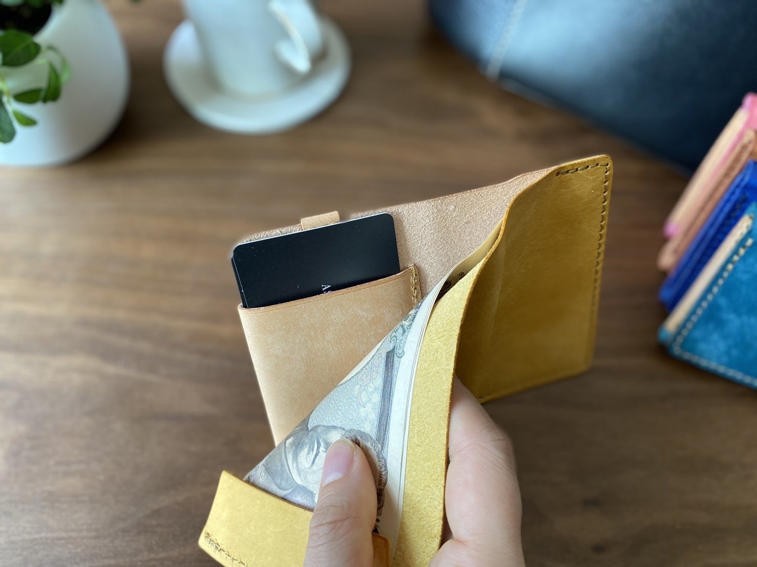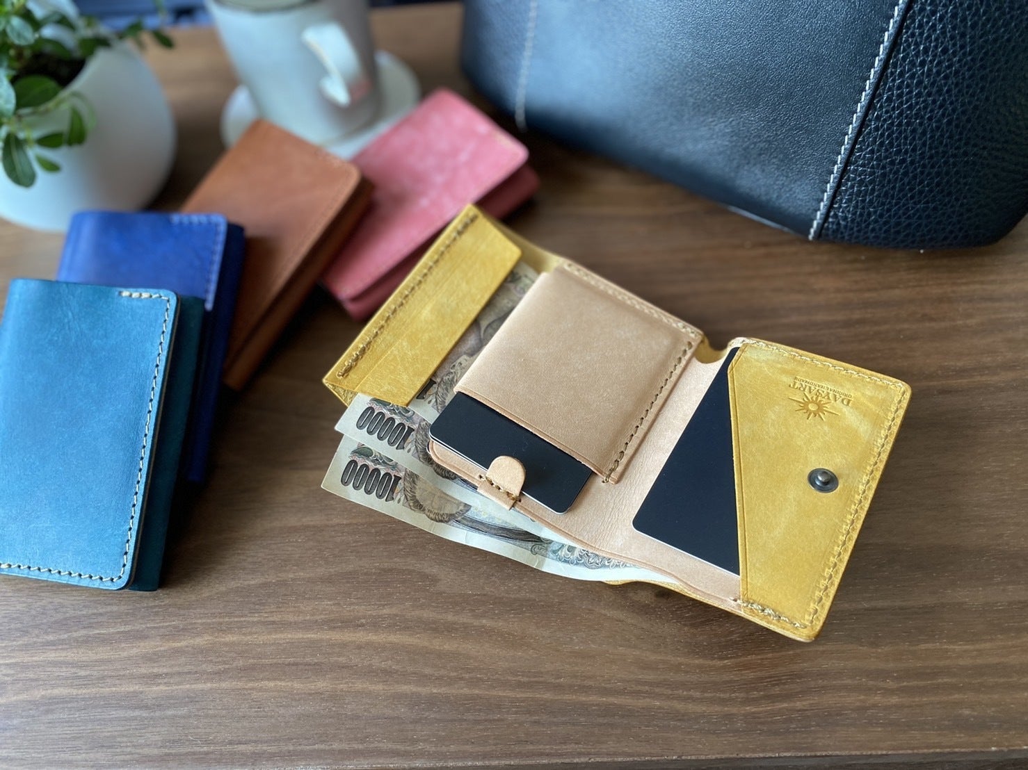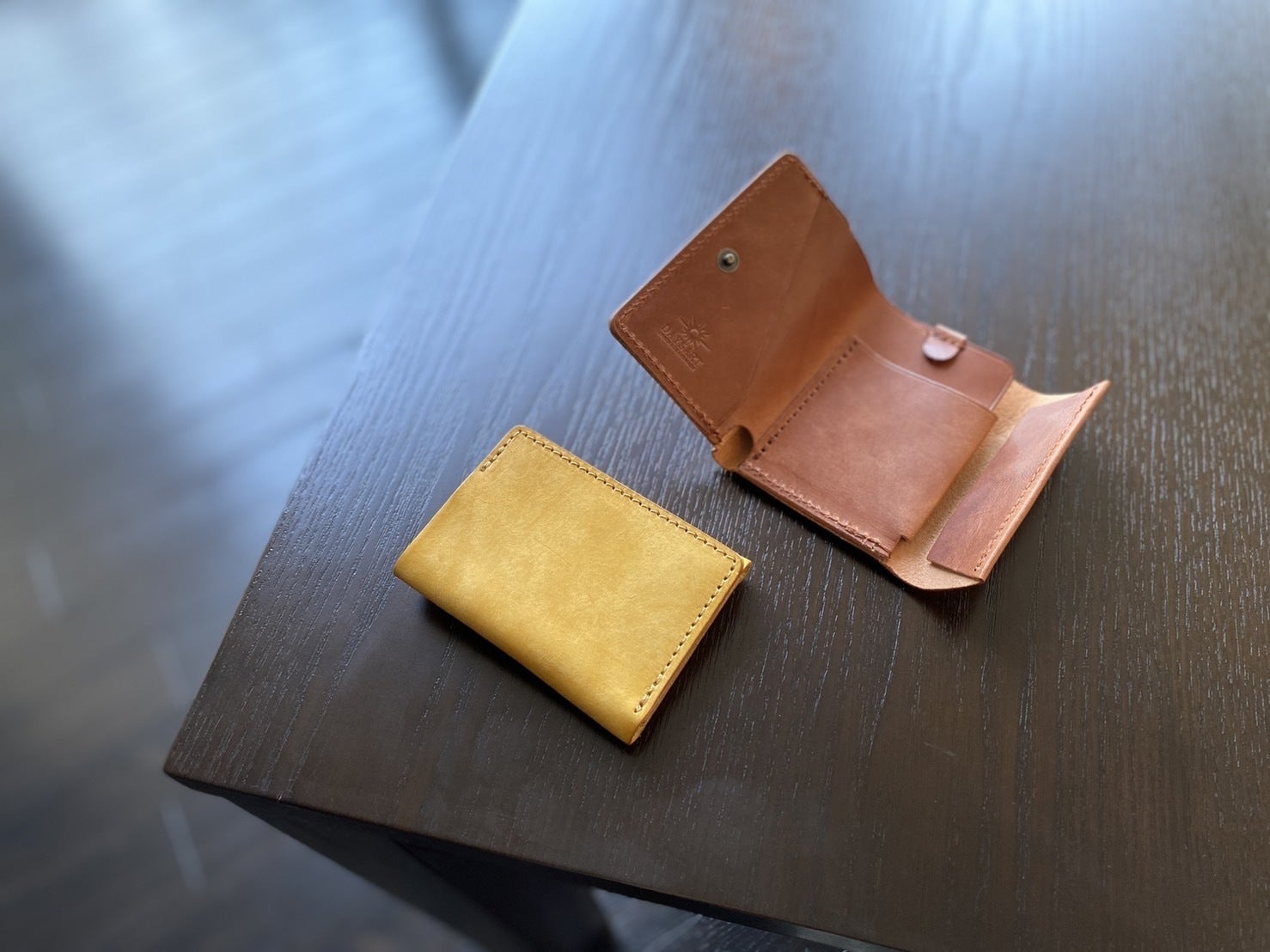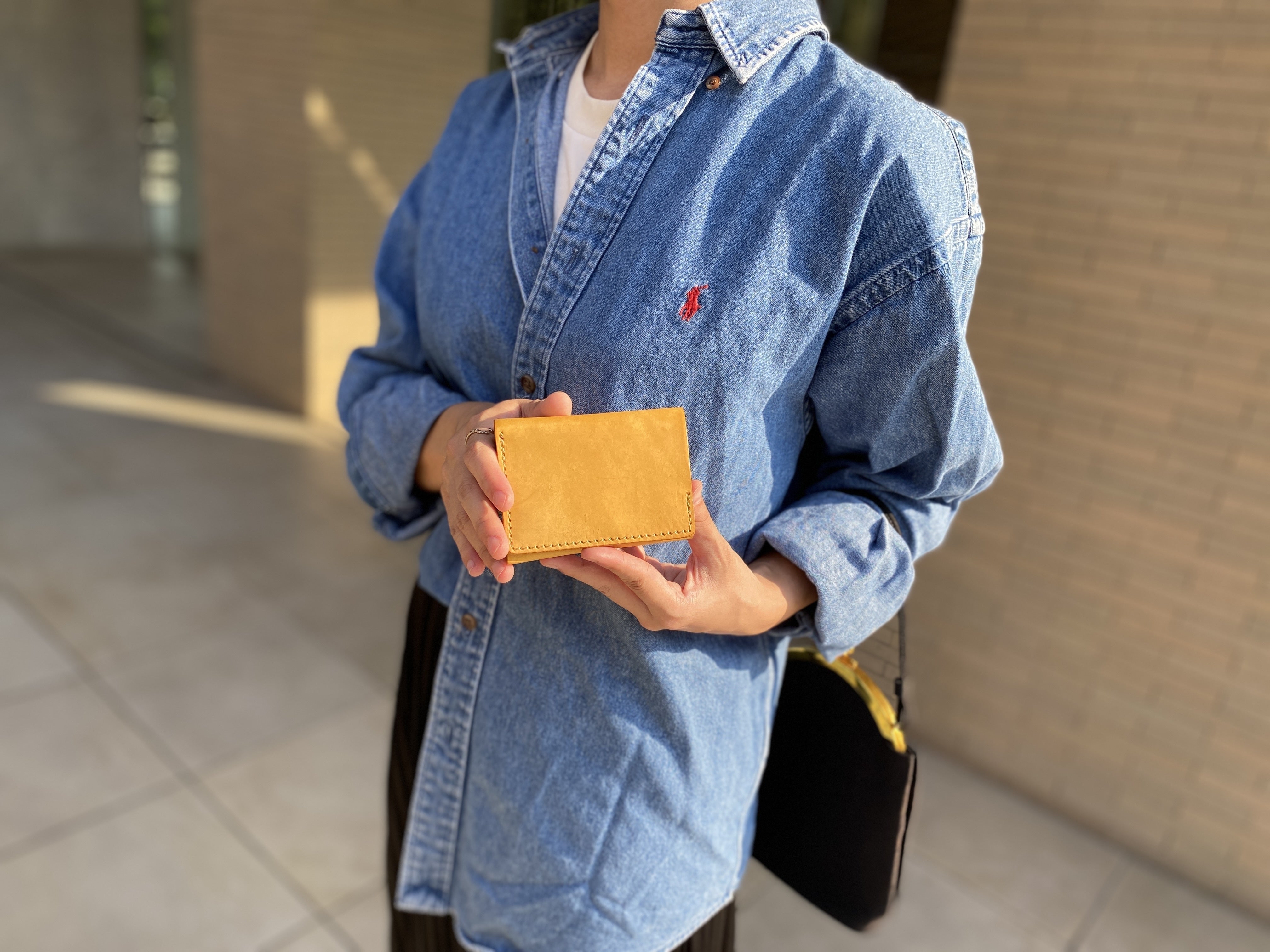鮮やかなイエローはタンニン鞣し革ではとても珍しいカラーで