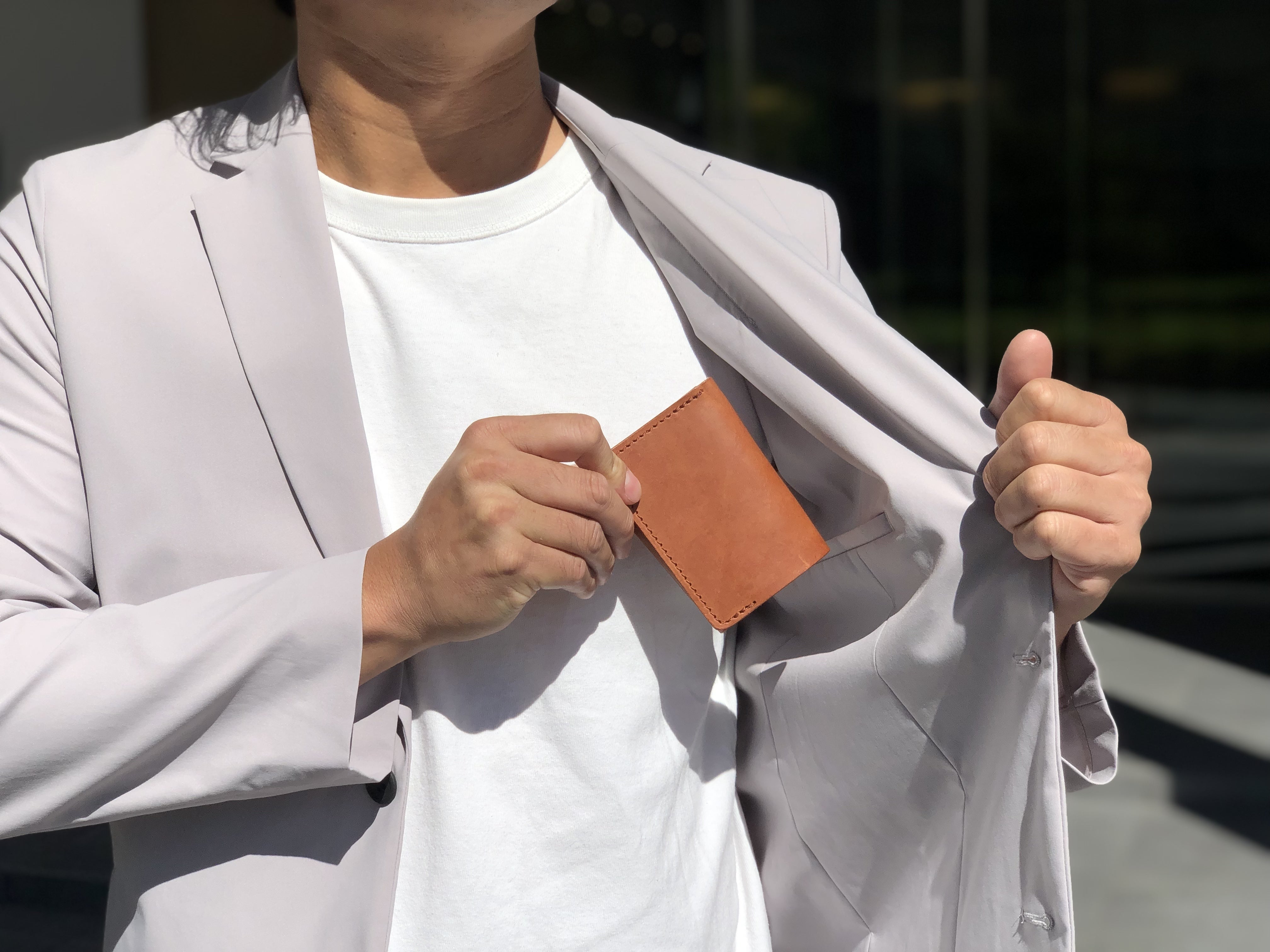 フォーマルタイプ(Bタイプ)は同色の中身で落ち着いた雰囲気があり、スーツやフォーマルシーンでも使える万能仕様です。