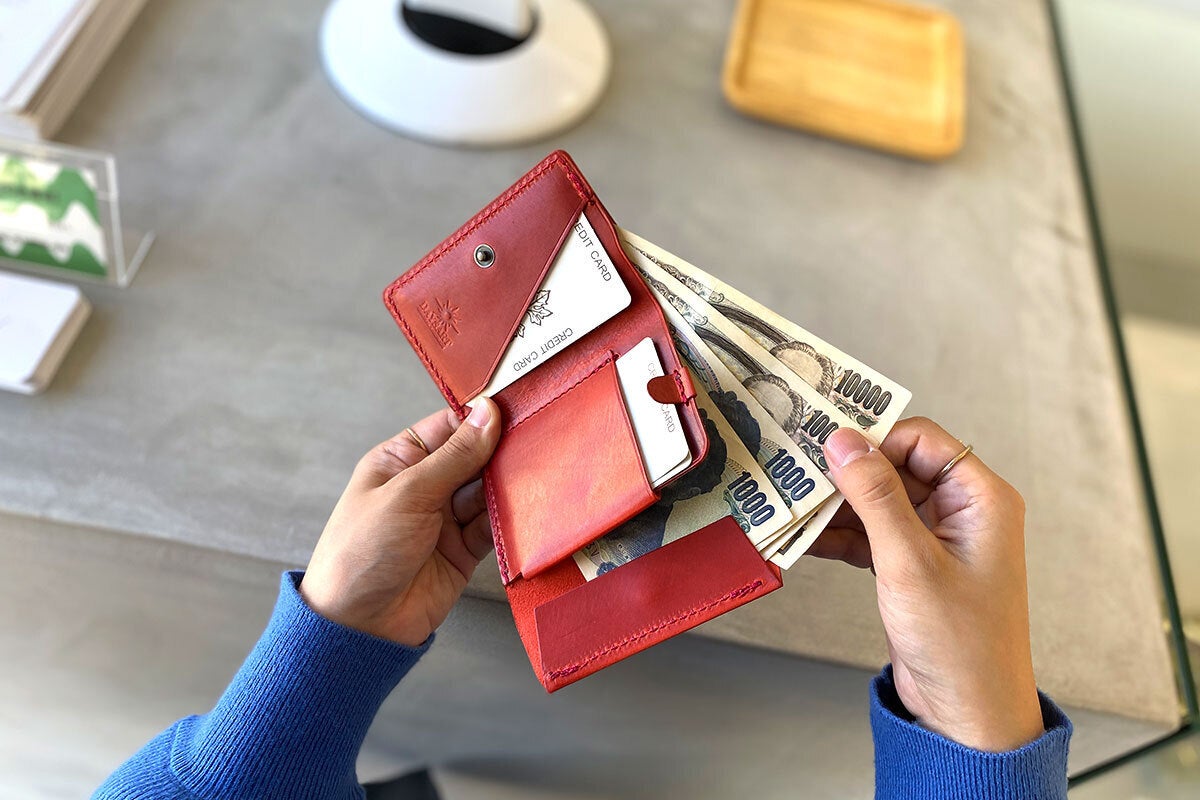 革がとても柔らかいので、カードをたくさん入れておくとカードの枚数に合わせて革が馴染んできますので、枚数を減らす際はカード抜けにご注意ください。