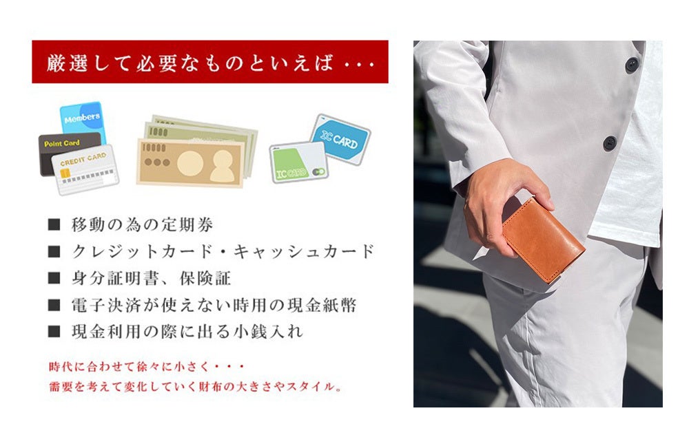 くらいなもので、『大きな財布』を毎日持ち歩くデメリットに気づいてしまった若者を中心に、コンパクトウォレットのニーズが高まりを見せるのは、必然と言えるでしょう。