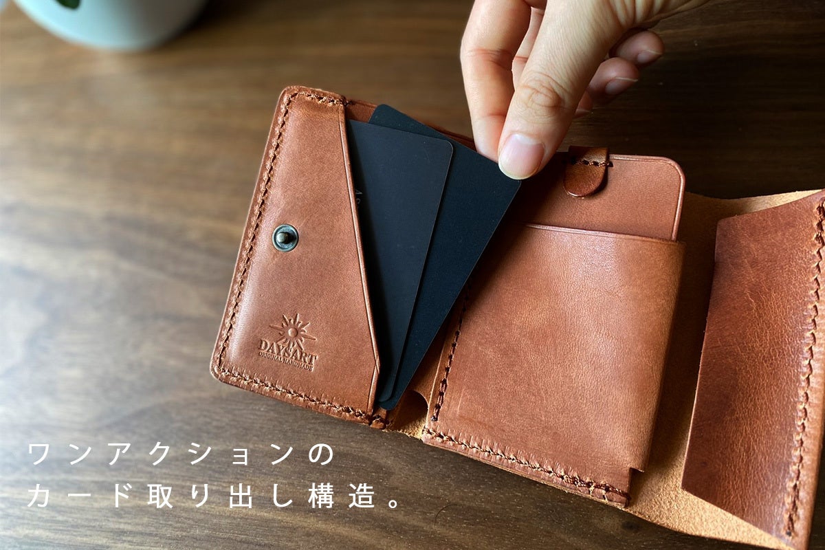 こちらは前回作同様、ワンアクションでアクセスできるようカードポケットに斜めのカットラインを入れる事で、一番スムーズにアクセスかつ、収納できるようなカード収納構造に仕上げてあります。