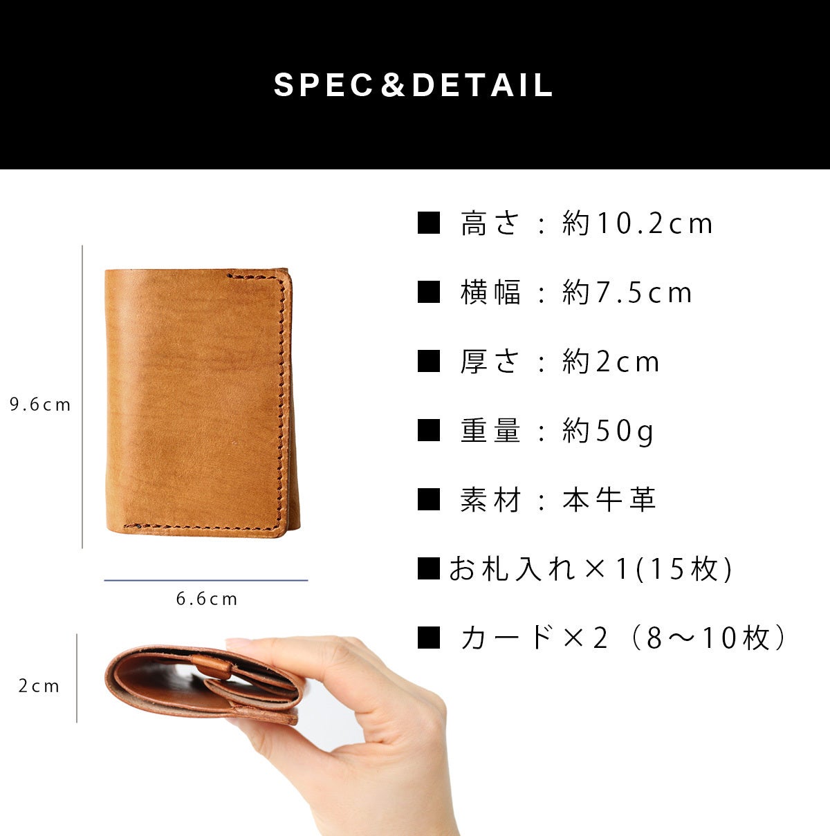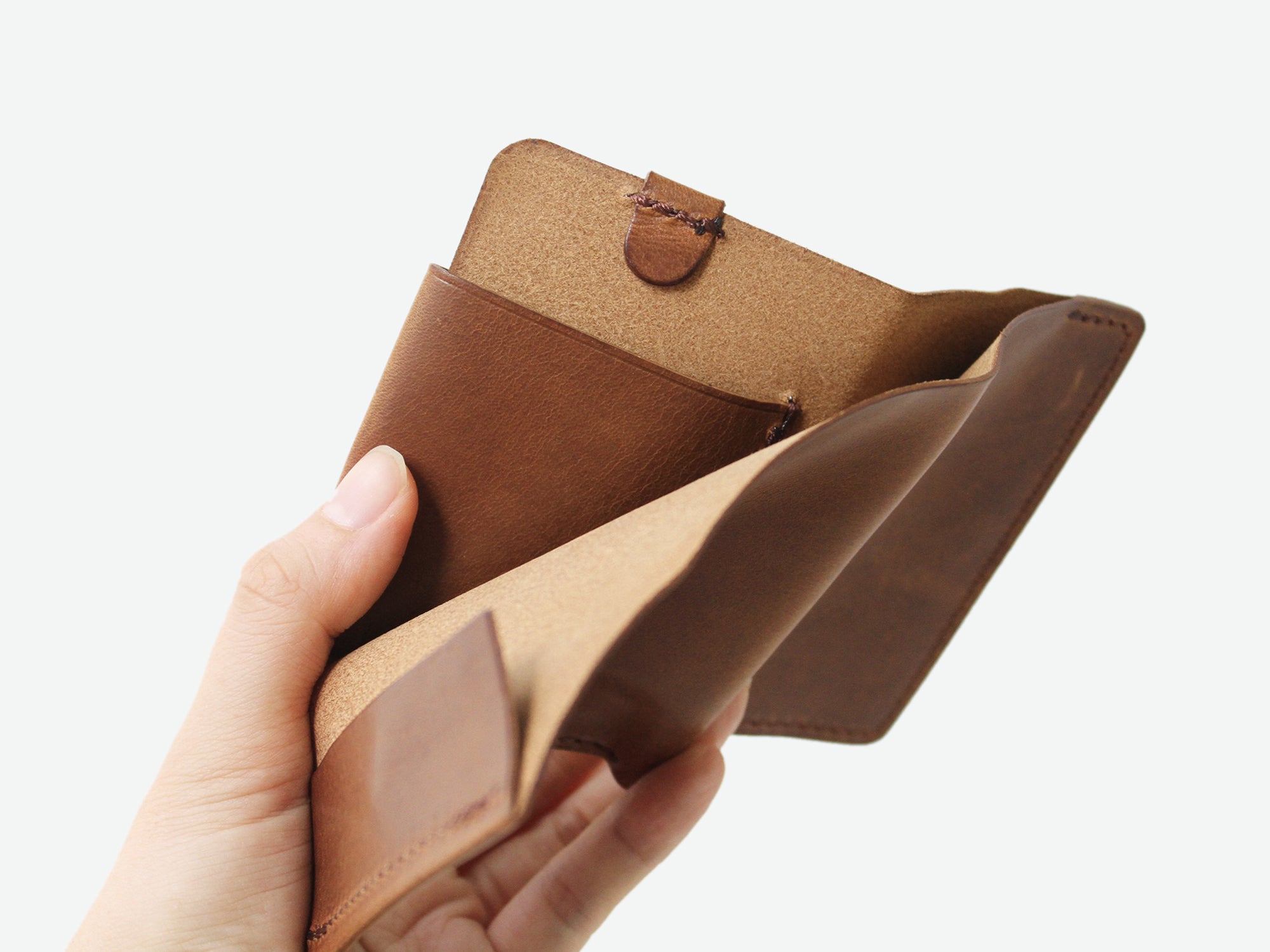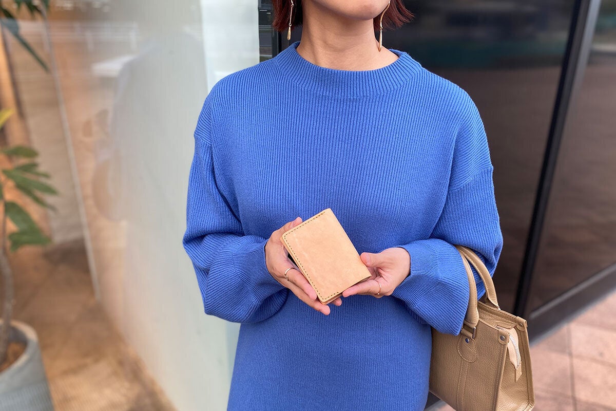 元々2㎜厚の革を敢えて1㎜厚まで薄く加工することで革本来のしなやかさと軽さを体現頂けます。