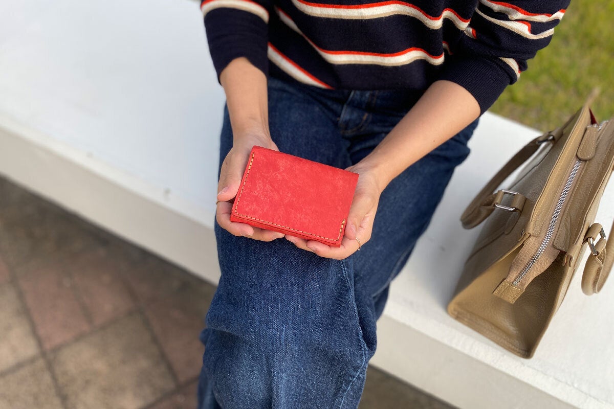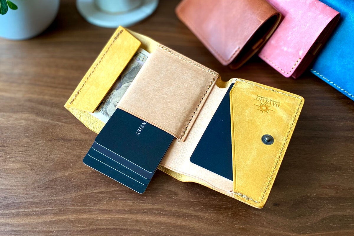カード枚数に革が馴染むと革が柔らかくなり、収納枚数を減らすとカードが抜けやすくなります。