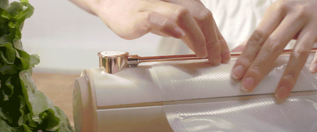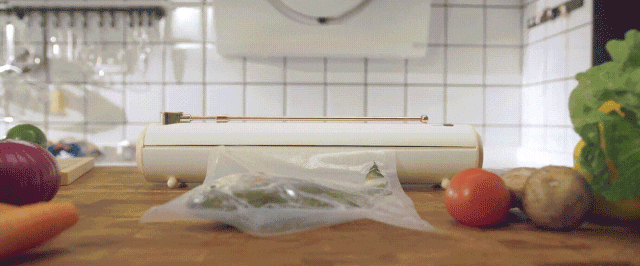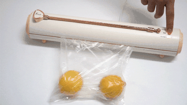 真空パックする時に専用袋は必要なし、極薄キッチン用ポリ袋もシーリング可能になります。ボタン一つで様々な食材を真空パックできます。