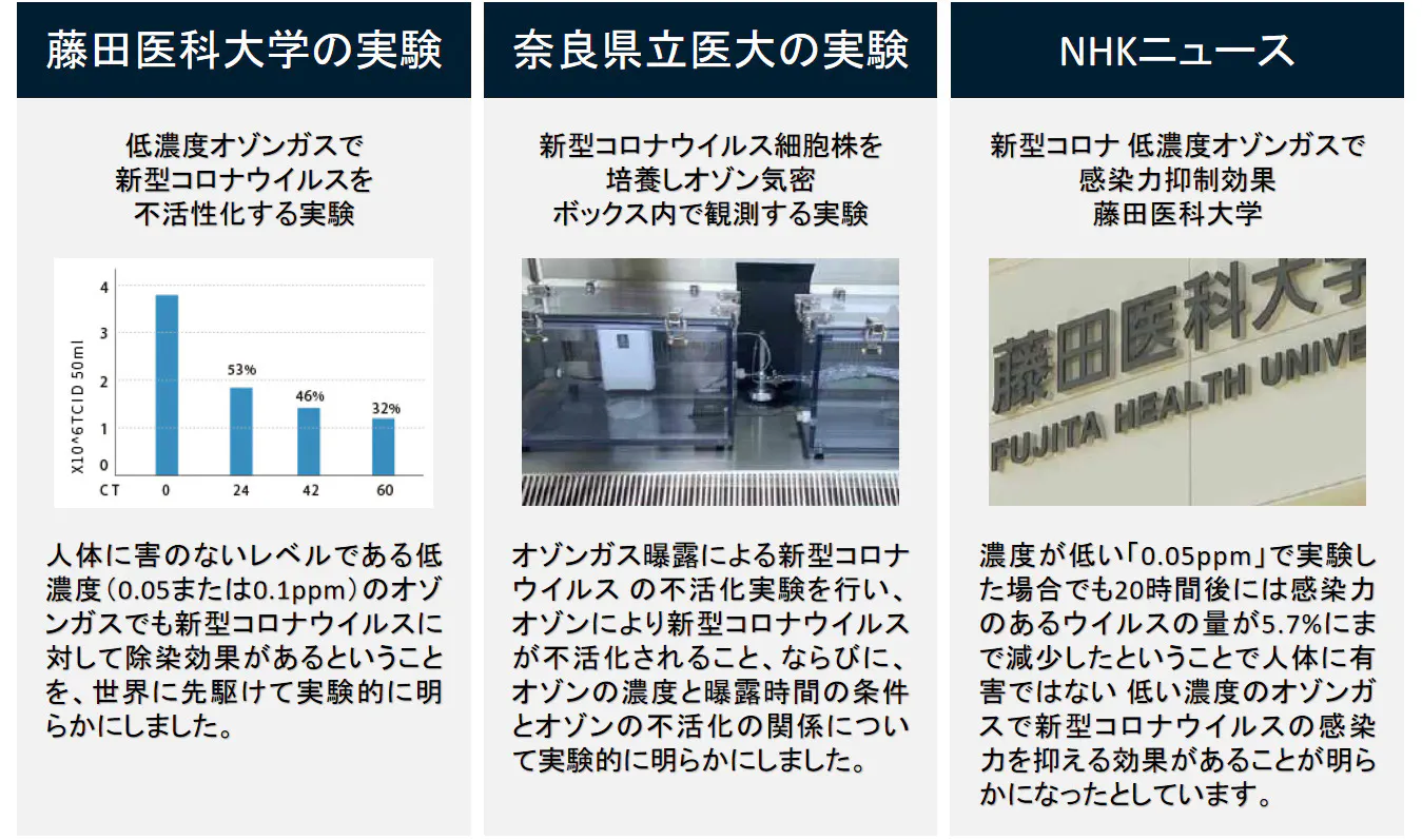 オゾンガスは多くの病原体を不活化する効果があることが知られており、新型コロナウイルスにも効果があることがすでに報告されています。しかし、既報の実験は、1.0〜6.0ppmという高濃度のオゾンガスを使用しており、人体への毒性が懸念されていました。