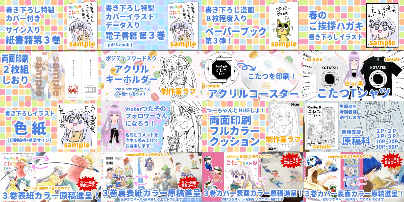 四コマ連載「はばたけ!こたつちゃん」、1巻2巻を無事に連載&書籍刊行が完了いたしまして、今回は3巻のご支援募集となります。