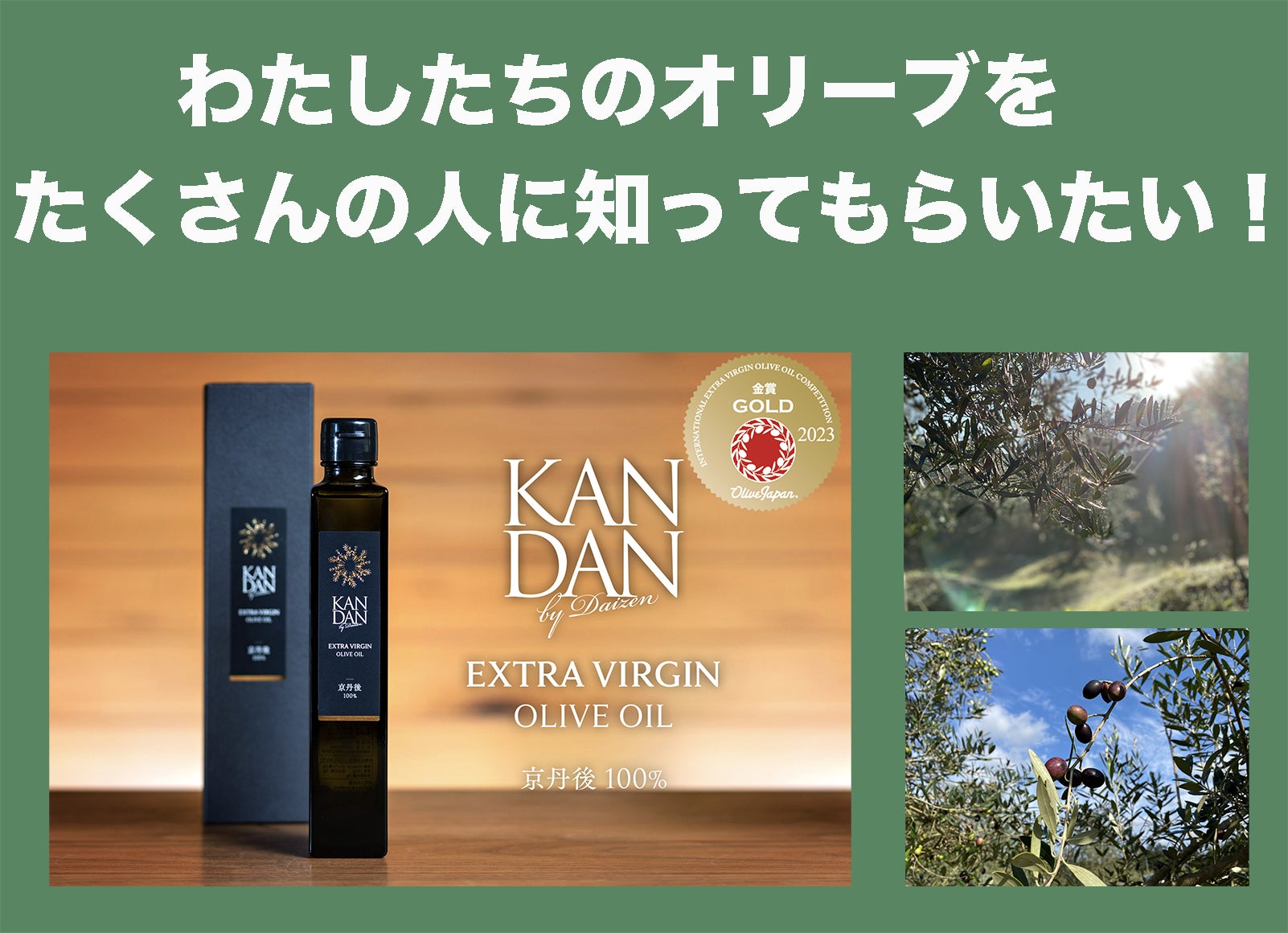 2020年からは、オリーブオイルのブランド「KANDAN」を立ち上げ、「京丹後産100%」のオリーブオイルの販売もスタートしました。