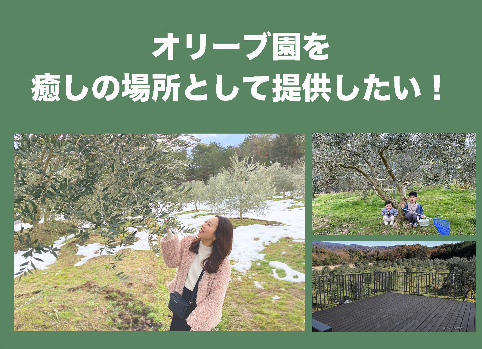 その施設内でわたしたちのオリーブオイルを楽しめる場所や広さを利用したイベント・農業体験なども考えています。