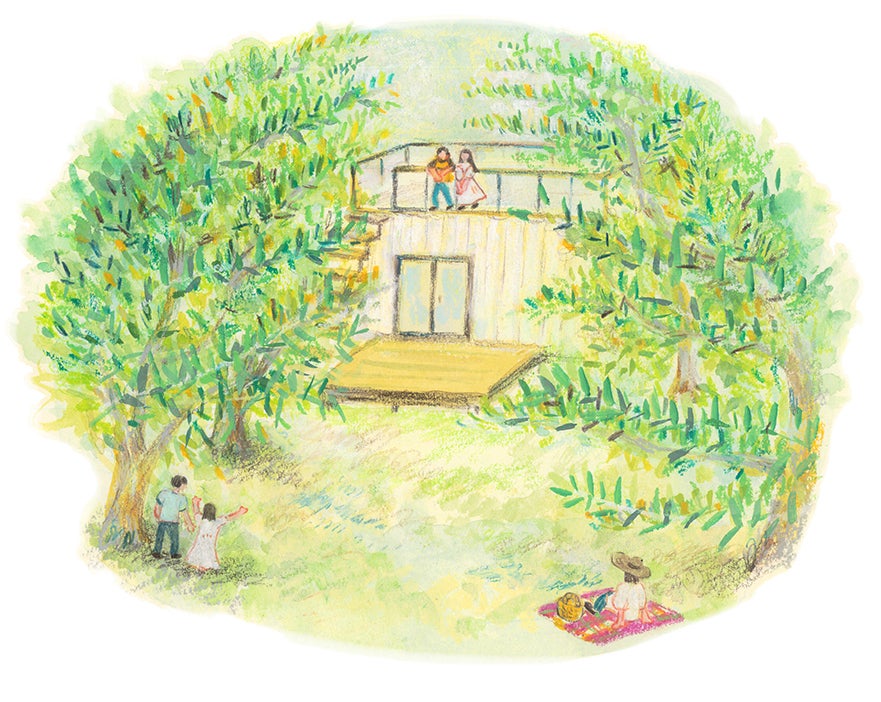 忙しないこの時代を生きている人たちに、”自然と触れ合い、心からリラックスできる場所を提供したい”という願いから、私たちは園内にオリーブを見渡せる「コンテナハウス」を設置し、オリーブガーデンをオープンするプロジェクトを考えました。