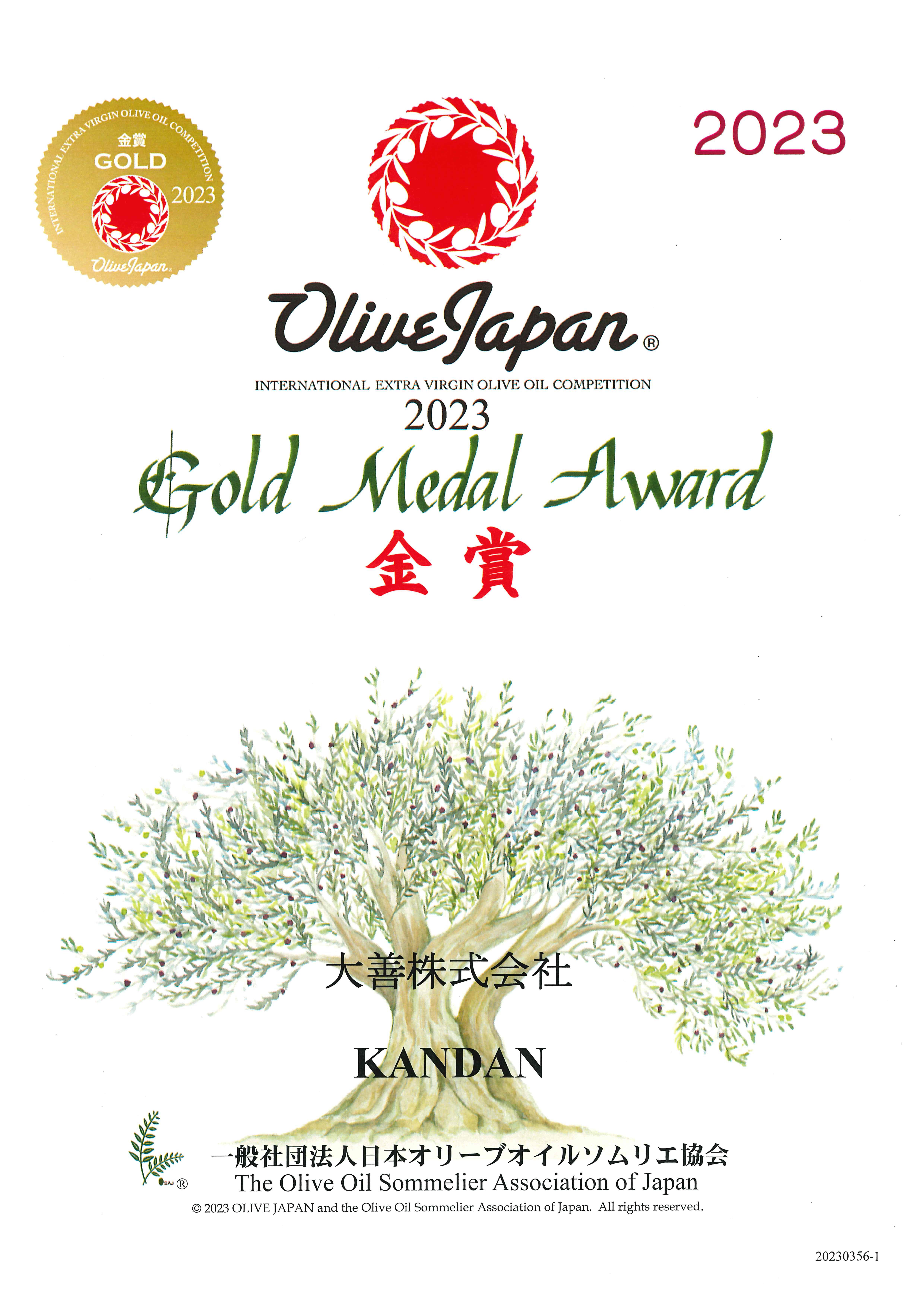 その品質管理もあり、今年の日本オリーブオイルコンテストではありがたいことに金賞を受賞しました。