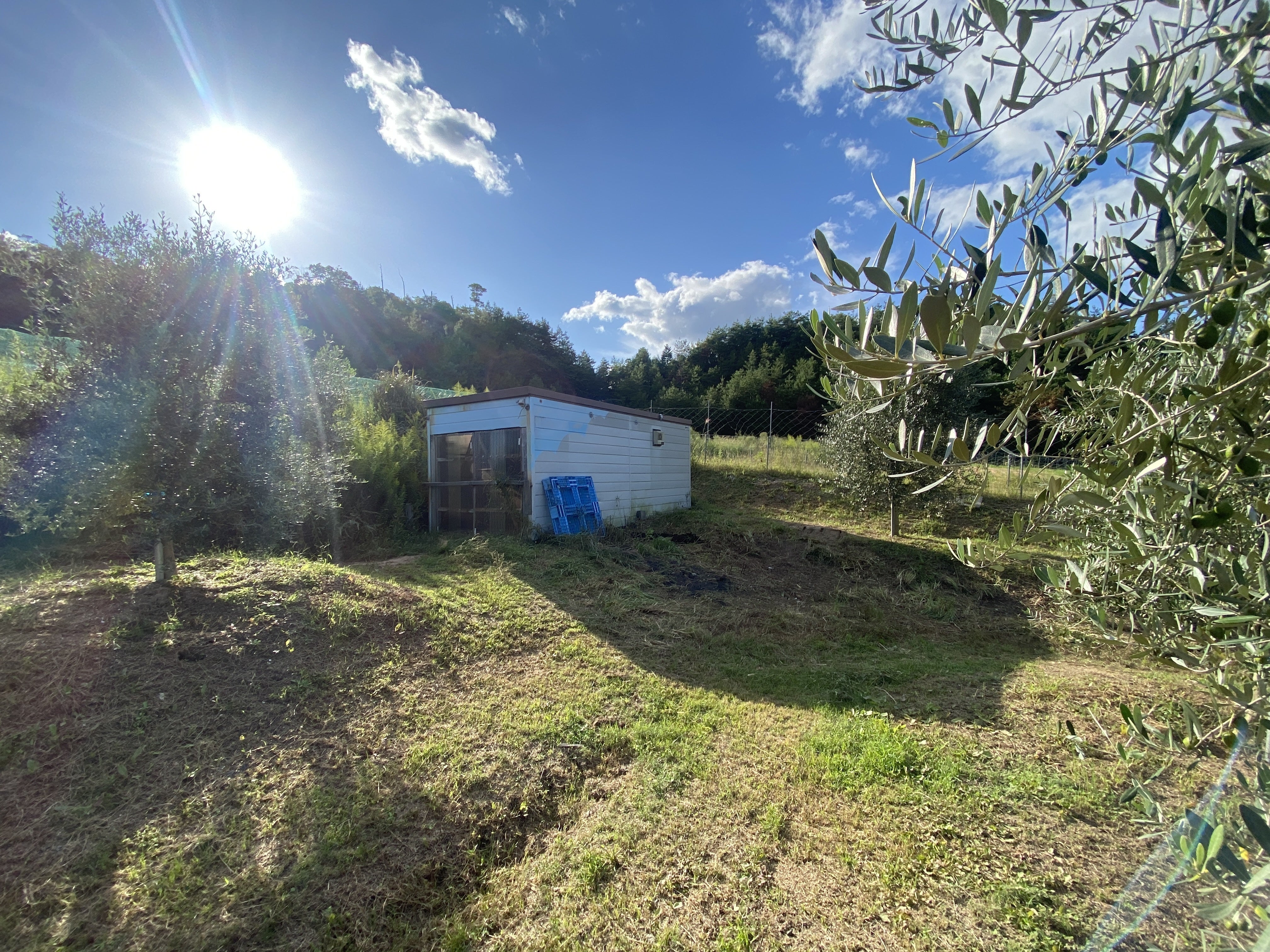 今現在オリーブ園内にはオリーブと農機具を入れる倉庫しかありません。オリーブ園は水捌けを良くする為に斜面になっていて、1番高台にその倉庫があります。