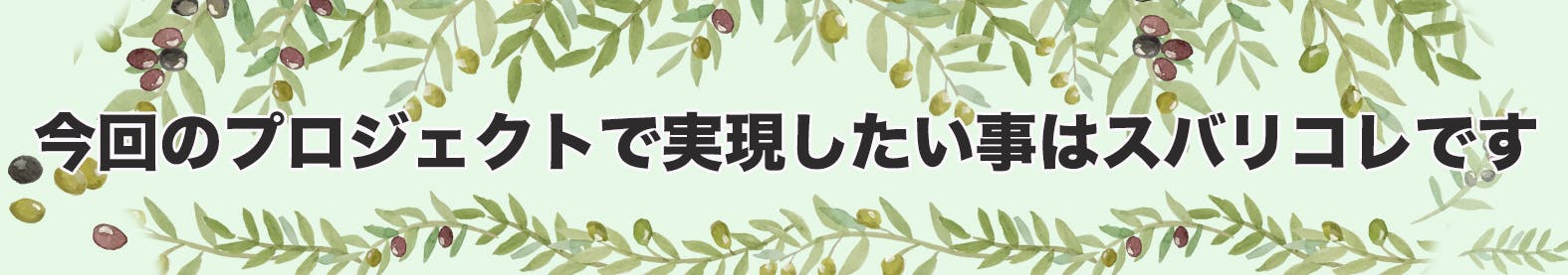 その中で”こんなオリーブ園があったらいいな” ”こんなオリーブ園の活用方法をしたいな!!”という想いが強くなっていきました。正直な話、私がやろうとしているプロジェクトは他には無く、世間に必要とされているのかわかりません。ただの自己満足にすぎないのかもしれません。そこをテストをするために今回クラウドファンディングをやろうと決意しました。達成しなければ需要がなかったと諦めます。