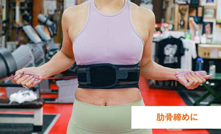 正しい姿勢を維持し、狭くなった肋骨と骨盤の距離を取り戻します。