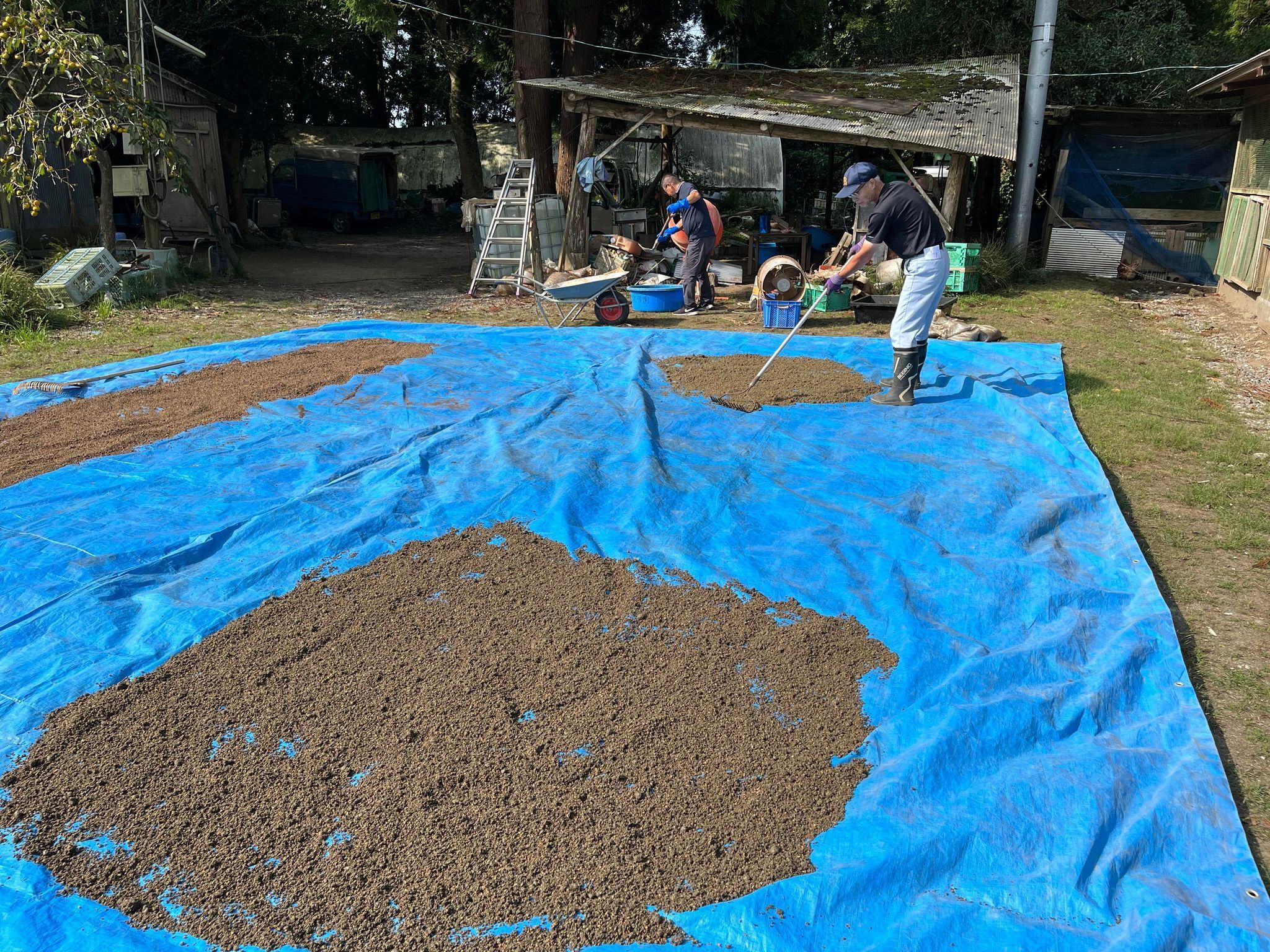 2023/02/21 19:26プロジェクトオーナー「美山たまご王国」の穂満です。いつも応援、ありがとうございます。今日は、日置のオリーブのことをお話しますね。本文でもお伝えしたように、「美山たまご王国」がある日置市は、今オリーブの栽培にとても力を入れています。南国でもあり、収穫時期が全国でも早いのだそうです。たくさん品種があり、収穫時期も微妙にずれていて、旬の時期は毎日大量に収穫をしています。日置のオリーブは、全部手摘みです。そして、摘んだら24時間以内に搾油しています。オイルになるのは6〜8%くらいだそうです。そして2度絞りはしない。ということは、その搾りかすにも、まだオイルが残っているんですね。(どうやら約25%くらい残っているらしいです)その搾りかすを鶏の飼料に混ぜてみようということで、「鹿児島オリーブ株式会社」さんから分けていただき、飼料づくりが始まりました。2019年のことです。私たちにとってはありがたい搾りかすですが、産業廃棄物になってしまうものでした。こうやって鶏の飼料として役立てることができて、よかったです。3日間、天日で干して飼料に混ぜますこの栄養たっぷりの餌を食べている鶏たちが、オリーブ鶏というわけです。産んだ卵はオリーブ卵です。私たちの卵は、黄身が淡い黄色です。自然のものだけを食べているからです。白身がぷりっとしていますよ。まずは卵かけご飯で食べてもらいたいですね。日置産オリーブオイルに、鹿児島の甘い醤油をちょっと垂らして。そうそう、搾油したばかりの日置産オリーブオイルは、エキストラバージンオリーブオイル・ヌーボーと名付けられた希少品で、フルーティでとってもおいしいです。秋頃から限定販売されているので、こちらもあわせてご紹介しておきますね。美山たまご王国 穂満義隆 もっと見る