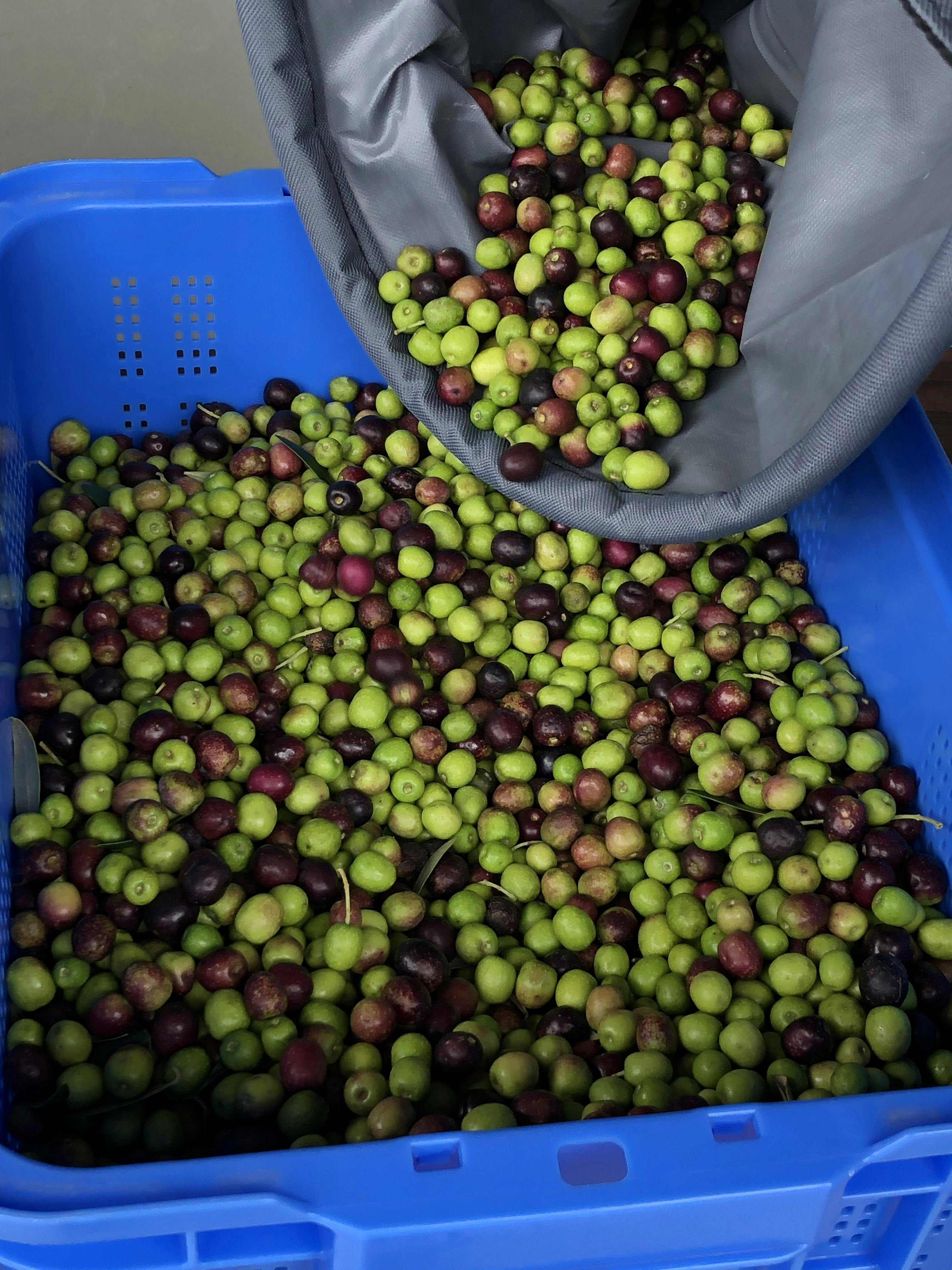 日置のオリーブは、全部手摘みです。そして、摘んだら24時間以内に搾油しています。