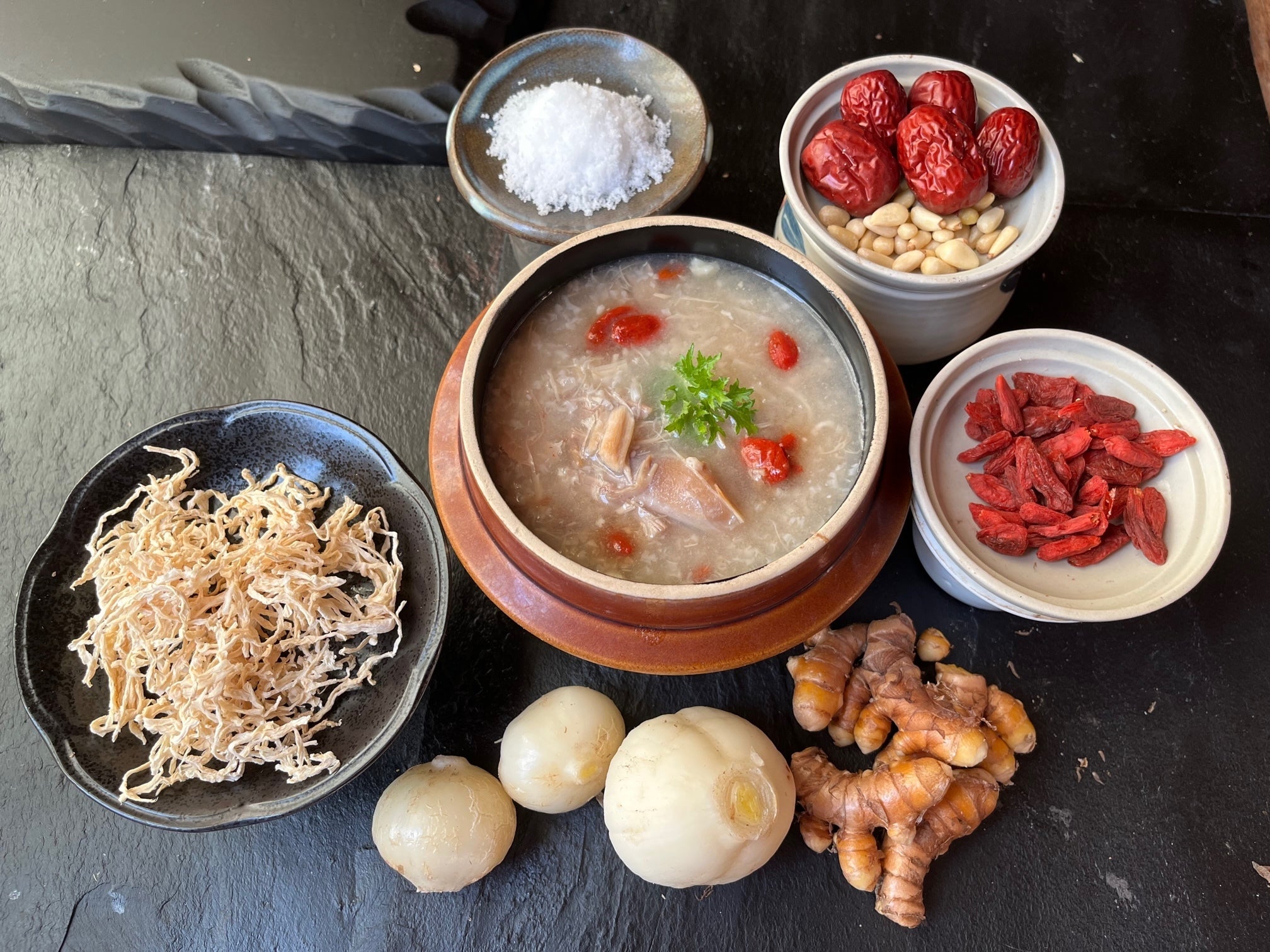 「参鶏湯(サムゲタン)は、鶏肉とお米、高麗人参などをじっくり煮込んだ韓国料理のひとつで、古くから滋養食として食されています。