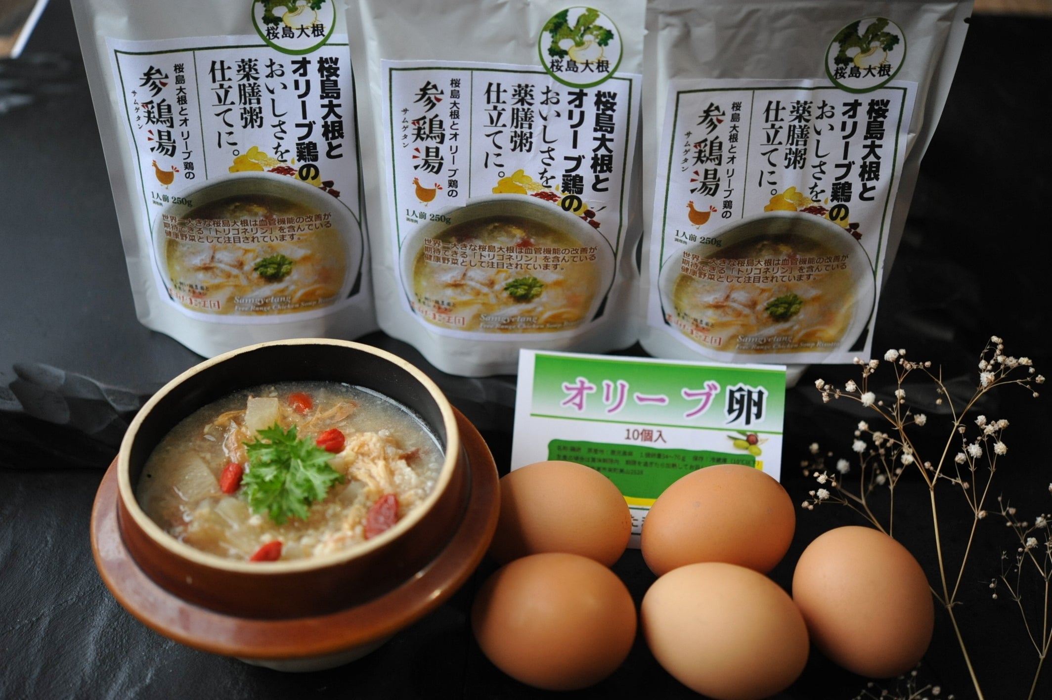このたび私たちは、新商品「桜島大根とオリーブ鶏の参鶏湯」を開発しました。
