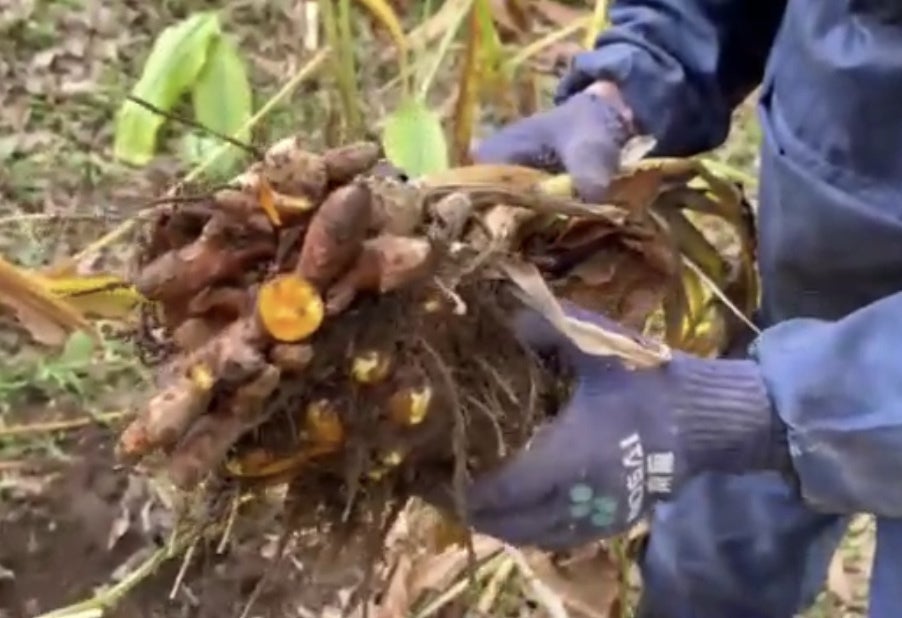 農園で収穫したウコン。