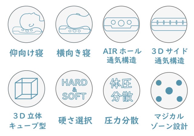 ゼログラビティピローにはキューブ内の中央に独自のエアホール設計を採用。