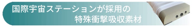 表・裏の両面に配合された衝撃吸収素材「メモリーフォーム」は宇宙ロケットの発着陸の衝撃吸収のために開発された特殊素材。