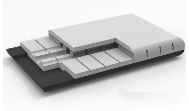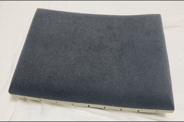首や肩に当たる箇所のキューブは柔らかく沈むように大きなブロックに、頭の中心が乗る中央部分のキューブは繊細に圧力分散を分散できるように小さなブロックで設計されています。