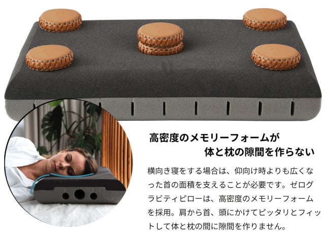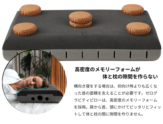 どちらの面にも衝撃吸収素材メモリーフォームが配合されており、お好みに合わせてどちらでもゼログラビティピローの特性を体感することが可能です。