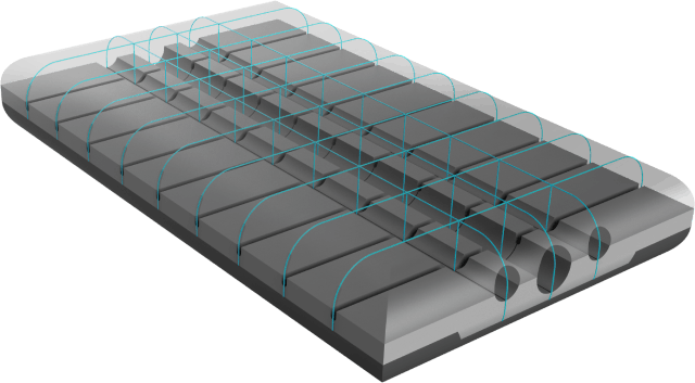 40ユニットにカットされたキューブが枕にかかる圧力をその一つ一つで分散します。