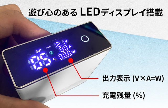 「Bull 20000」は充電中の上面のスクリーンで充電残量だけでなく、出力表示(V×A=W)を可視化!