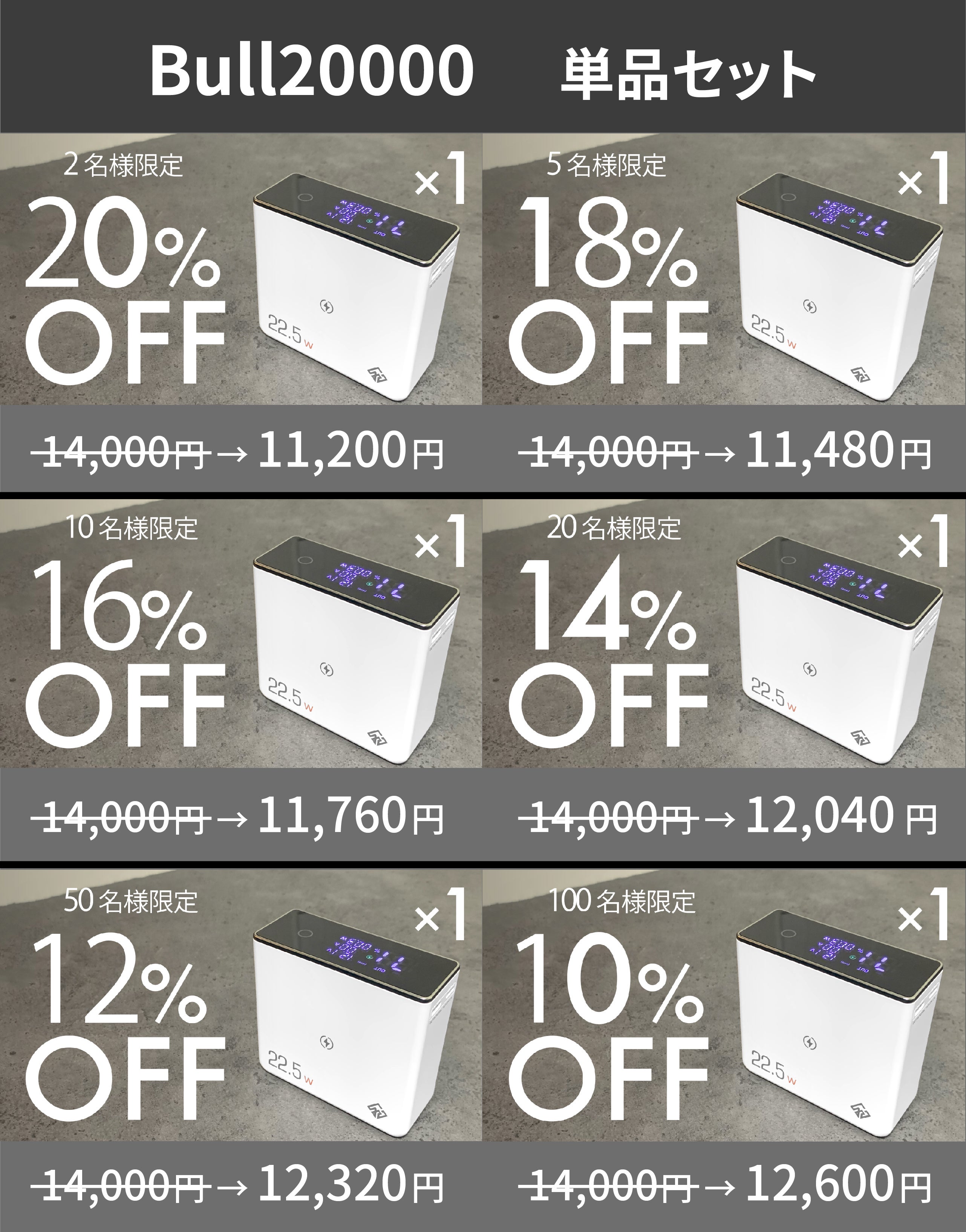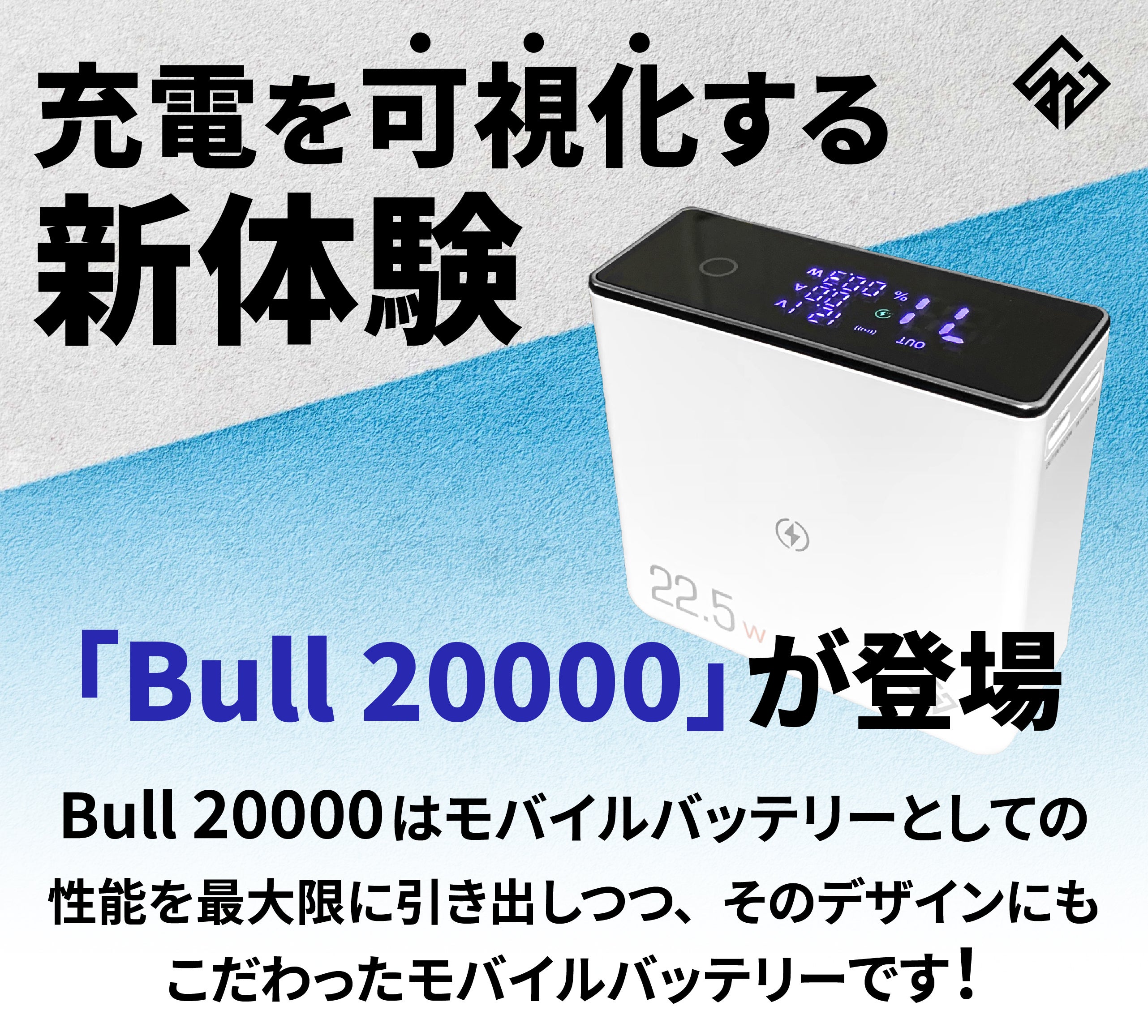 「Bull 20000」は このサイズ感でなんと大容量20000mAhを搭載。外出時にも頼もしい一台です。