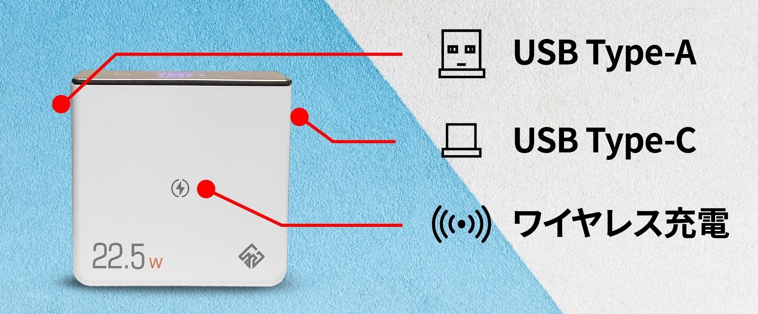 ケーブル接続2台+ワイヤレス接続1台の合計3台同時充電をが可能となり、充電の幅が広がります。