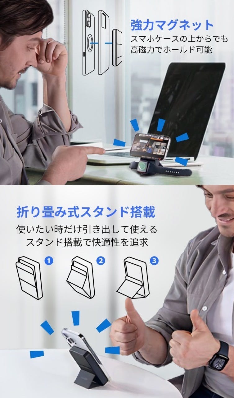強力マグネット×スタンド搭載モバイルバッテリーでいつでもどこでも快適充電!