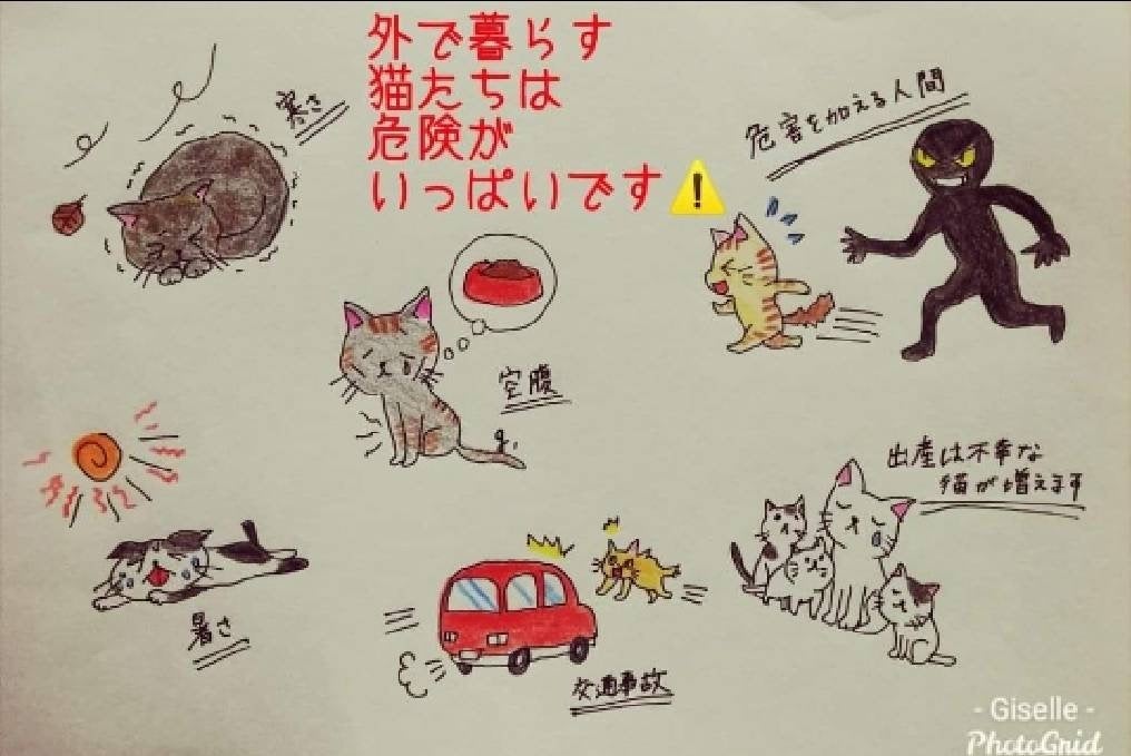 家族のいない外猫たちは虫を食べ、ゴミを漁り、泥水を飲み、寒さ、暑さに耐え、事故や虐待などの危険や、病気、長生きできない過酷な生き方を強いられています。
