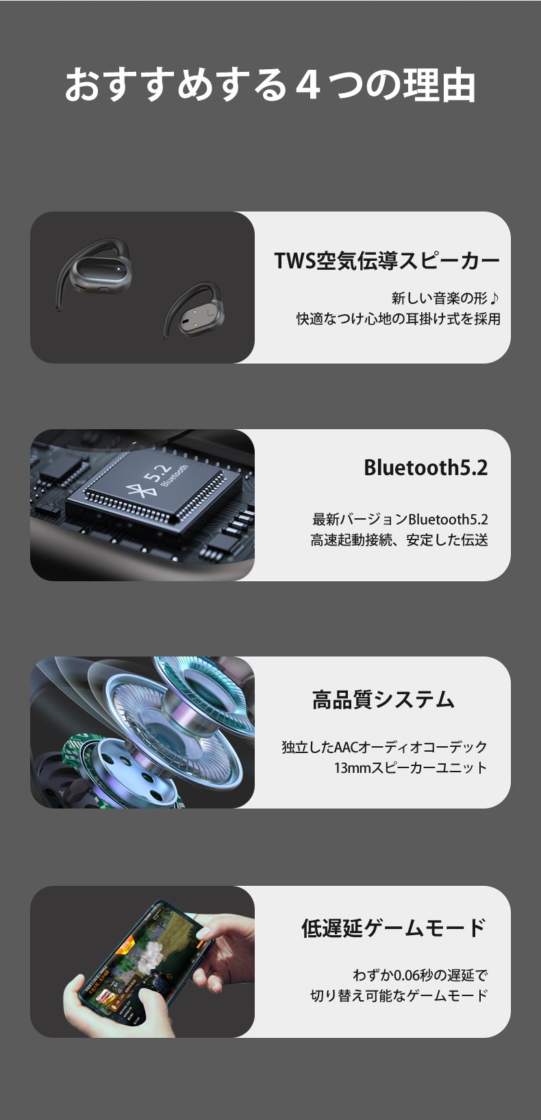 周りの音を聞きながら使用出来るのでランニングやサイクリング、会議やリモート、交通機関での移動でもアナウンスを聞きながら音楽を楽しむ事が可能です。