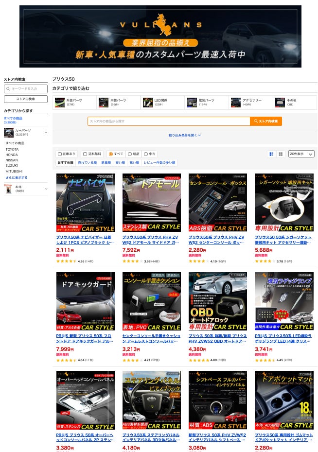 すでに多数の人気車両カスタムパーツをご販売しており、複数の大手ECモールで販売しております。