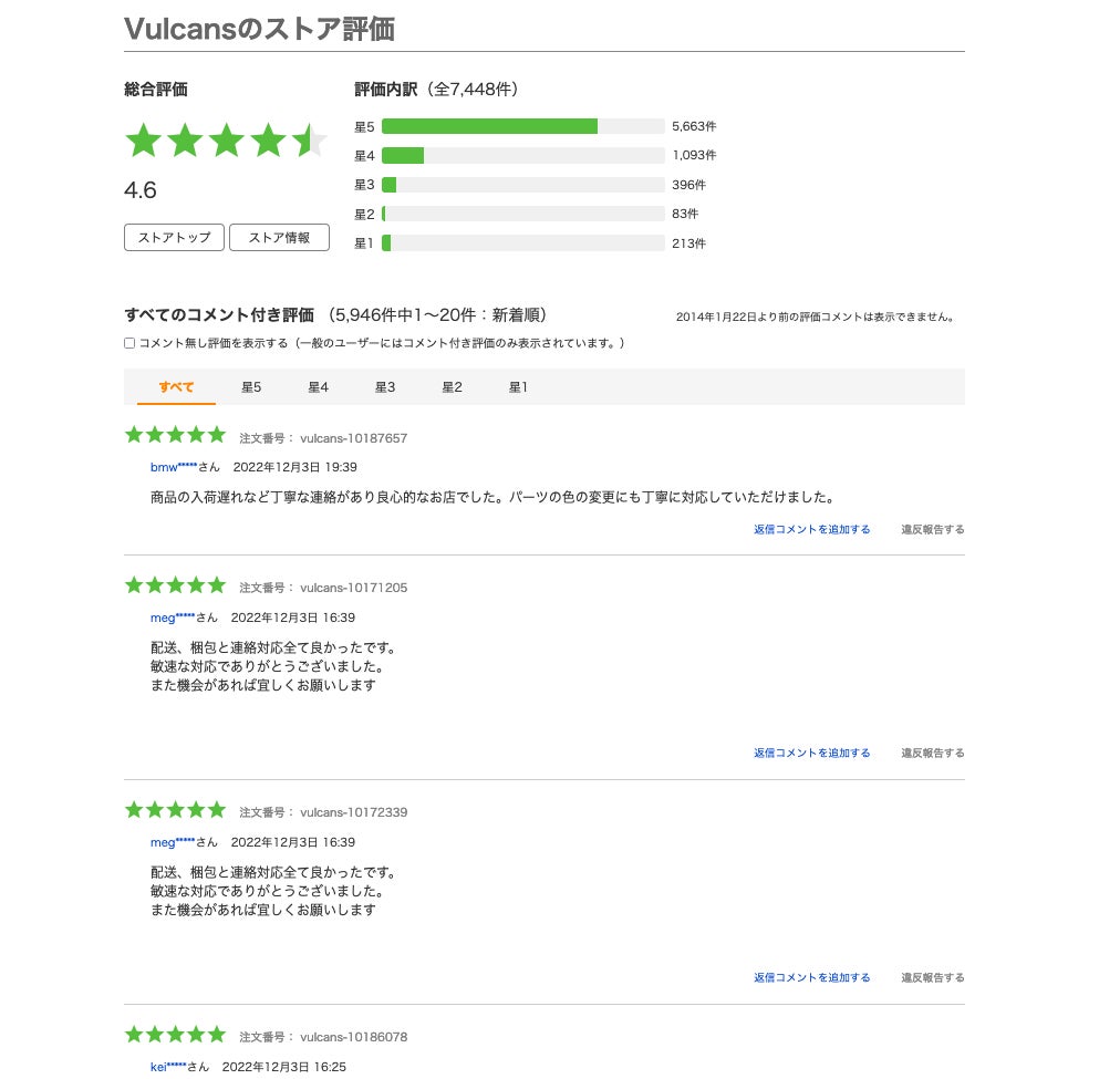 Vulcansは大手ECモール各社にてネット販売を行なっております。