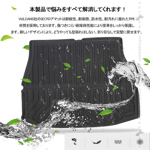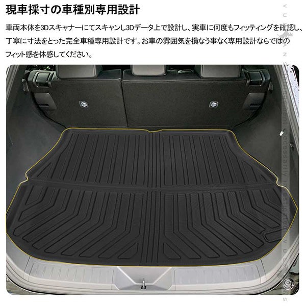 専用の3D設計でラゲッジスペースにピタッリフィット!耐候性に優れ、長時間使用しても表面の劣化が起こりません。今までの平面マットではカバーできなかったホコリや汚れを立体構造によりしっかりと受け止め逃がしません。