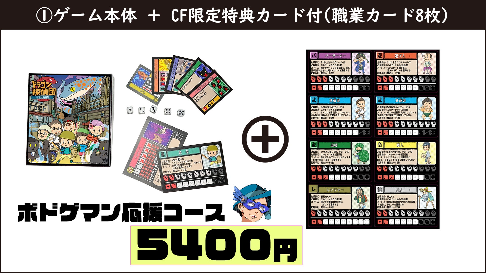 2023/03/10 15:52皆様、本プロジェクトにご支援くださり本当にありがとうございます!クラウドファンディング終了まであと9日!支援者様からのご要望もあり、新たなリターン品を3つ追加致しました!注意事項をご確認の上、この機会にぜひご支援ください♪追加リターン①【現地集合/現地解散】最大6泊7日マレーシア豪邸視察&先行プレイ会コース 160,000円リターン内容:『ドラゴン探偵団』本体+キャンプファイヤー支援者様限定『ドラゴン探偵団』特典カード(職業カード8枚)+高額支援者様限定『ドラゴン探偵団』特典カード(ボスカード7枚)+【2名様分】マレーシアの岡本邸宿泊(最大6泊7日)ご招待券 ※1日3回食事、社用車、国際タクシー等でお出迎え付+未発表のボードゲームを先行してプレイできる権利 ●リターンに関する概要と注意事項マレーシア・ジョホール州に住む岡本吉起の邸宅に最大6泊お泊り頂けます。マレーシア・ジョホール州の岡本宅にて現地集合、現地解散となります。シンガポール・チャンギ空港着の場合は社用車でお迎えも可能です。岡本宅までの交通費、滞在に伴う諸経費は支援者様のご負担でお願い致します。岡本のメイドたち(スリランカ人) が作る、エスニックなお食事を1日3回ご用意します。ご希望でしたら岡本の愛車「メルセデスベンツ・マイバッハ」「Jeep Wrangler」などにも試乗頂けます。滞在中は『ドラゴン探偵団』のプレイ会はもちろん、未発表のボードゲームの先行プレイや『カタン』などの名作ボードゲームもご一緒にプレイしましょう。宿泊コースは2023年の9月以降に実施予定で、先着順で宿泊可能な期間をご案内させて頂きます。ご滞在期間は支援者様のご希望に岡本ができる限り合わせます。追加リターン②2大都市開催! 未発表のボードゲームの先行プレイ会コース 60,000円(税込)リターン内容:『ドラゴン探偵団』本体+キャンプファイヤー支援者様限定『ドラゴン探偵団』特典カード(職業カード8枚)+高額支援者様限定『ドラゴン探偵団』特典カード(ボスカード7枚)+【東京都内、大阪府内開催】岡本吉起と未発表のボードゲームを先行プレイする(2時間)●リターンに関する概要と注意事項開催場所(東京都内もしくは大阪府内)にて、岡本吉起、支援者様、ボードゲームスタッフと一緒に未発表のボードゲームを楽しむ会になります。プレイするゲームはプロトタイプのボードゲームや、『カタン』を予定しております。初めてプレイされる方がいらっしゃった場合は、皆様が楽しく遊べるよう岡本が解説をいたします。支援者様と開催日の日程調整を行ったのち、開催場所(東京都内もしくは大阪府内)をご相談させて頂きます。開催は2023年の8月もしくは10月を予定しております。開催場所にて現地集合、現地解散となります。会場までの交通費、滞在に伴う諸経費は支援者様のご負担でお願い致します。追加リターン③東京西麻布開催!岡本吉起と一緒に日本料亭でディナー&未発表のボードゲームの先行プレイ会コース 90,000円(税込)リターン内容:『ドラゴン探偵団』本体+キャンプファイヤー支援者様限定『ドラゴン探偵団』特典カード(職業カード8枚)+高額支援者様限定『ドラゴン探偵団』特典カード(ボスカード7枚)+【東京西麻布開催】岡本吉起と一緒にディナー&未発表のボードゲームを先行プレイする(3時間)●リターンに関する概要と注意事項開催場所(西麻布)にて、岡本吉起と日本料亭でのディナーをお楽しみいただいた後、支援者様、ボードゲームスタッフと一緒に未発表のボードゲームを楽しむ会になります。プレイするゲームはプロトタイプのボードゲームや、『カタン』を予定しております。初めてプレイされる方がいらっしゃった場合は、皆様が楽しく遊べるよう岡本が解説をいたします。支援者様と開催日の日程調整を後ほどご相談させて頂きます。開催は2023年の8月もしくは10月を予定しております。開催場所にて現地集合、現地解散となります。会場までの交通費、滞在に伴う諸経費は支援者様のご負担でお願い致します。 もっと見る