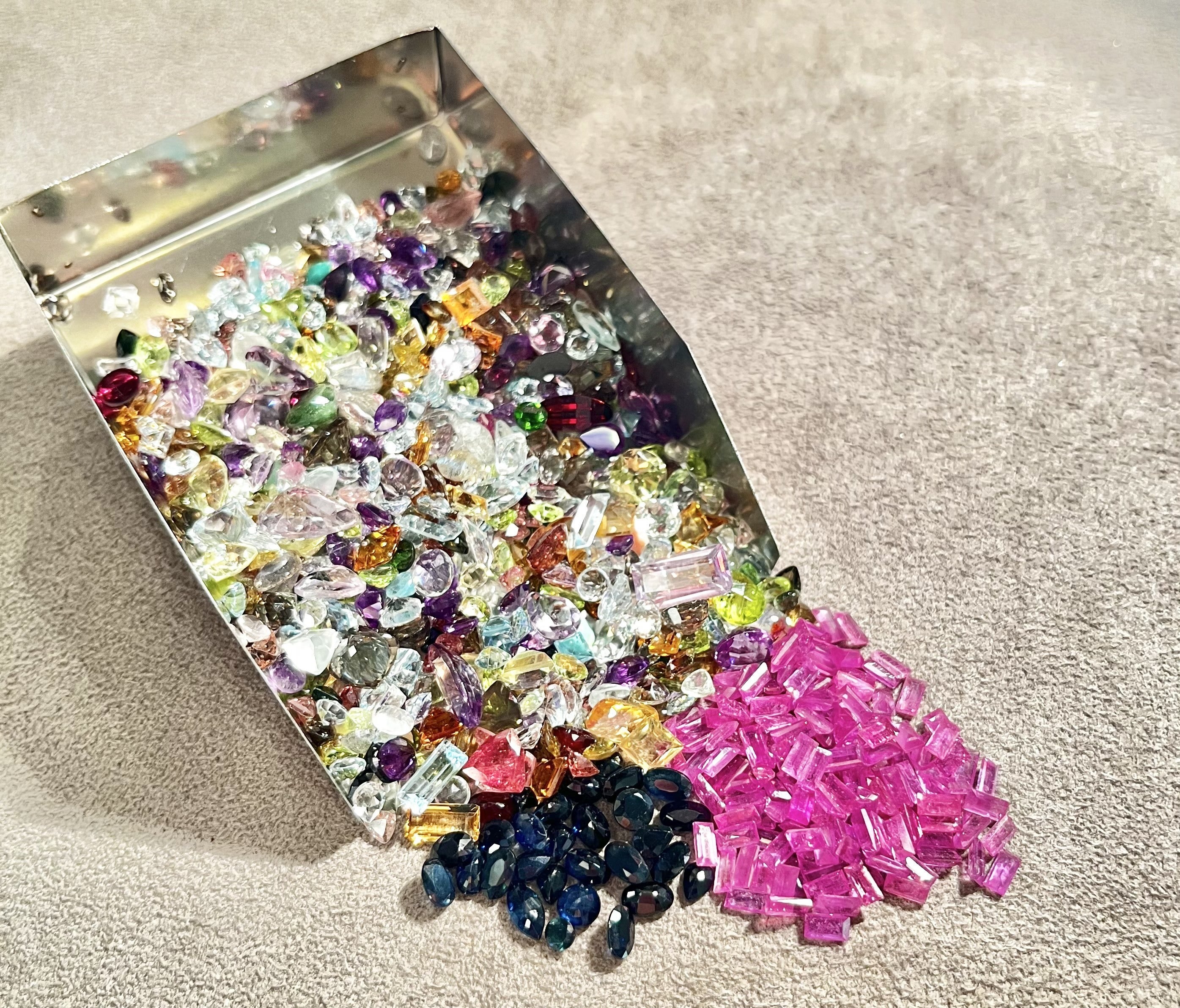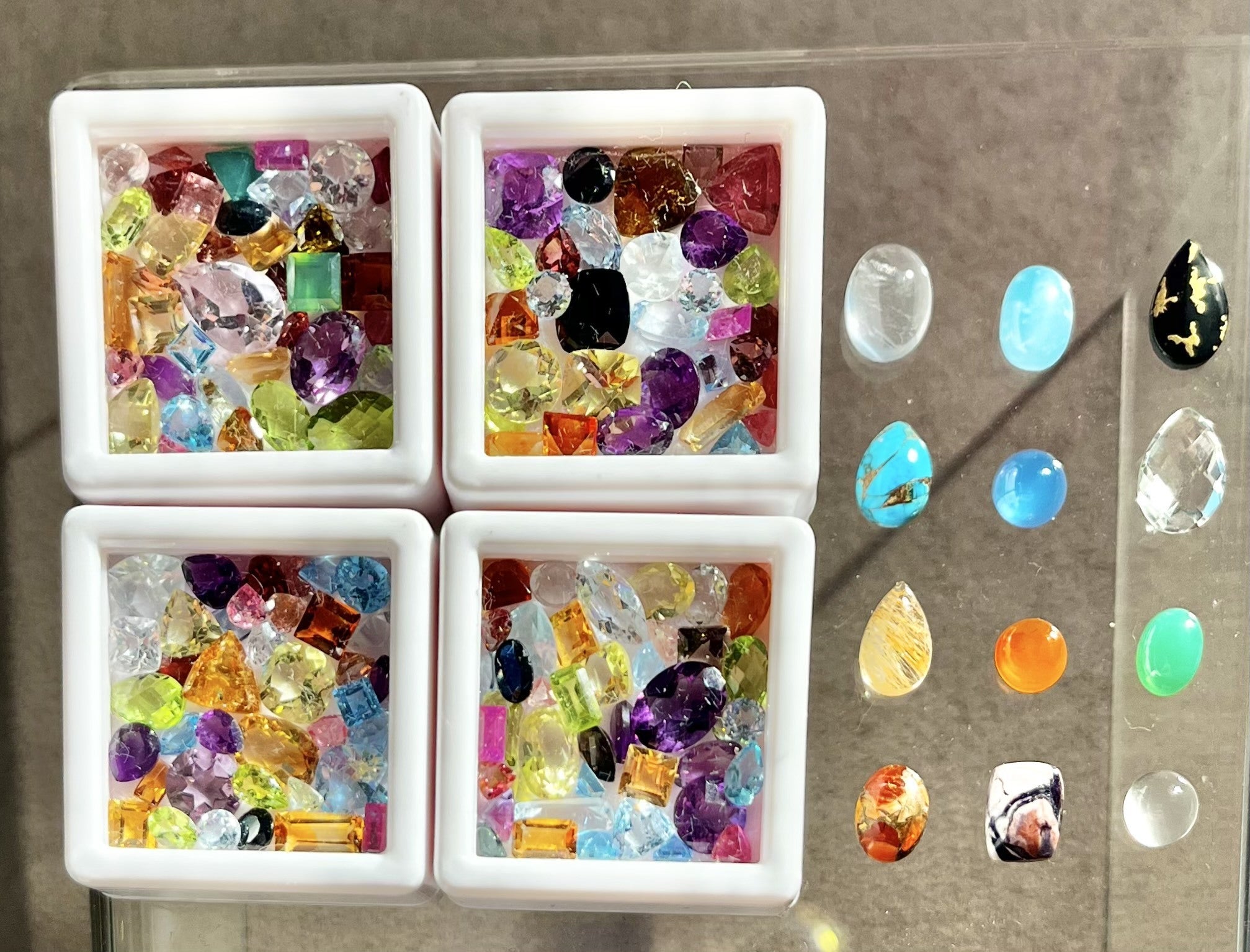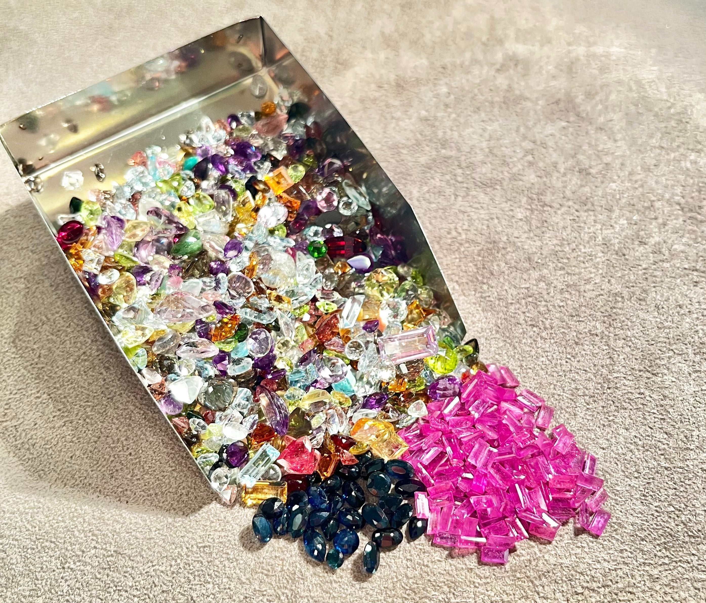 ピンクルビー・サファイア・エメラルド・ブルートパーズ・シトリン・トルマリン・ぺリドット・レモンクオーツ・クリスタル・ローズクオーツ・ガーネット・ストロベリークオーツ・ピンクアメジスト・マルチトルマリン・スモーキークオーツ・スピネル・ミルキーアクアマリン等幅広いカボションカット以外のキラキラ系天然石ルースを当社のお任せでたっぷり詰めこみました♪