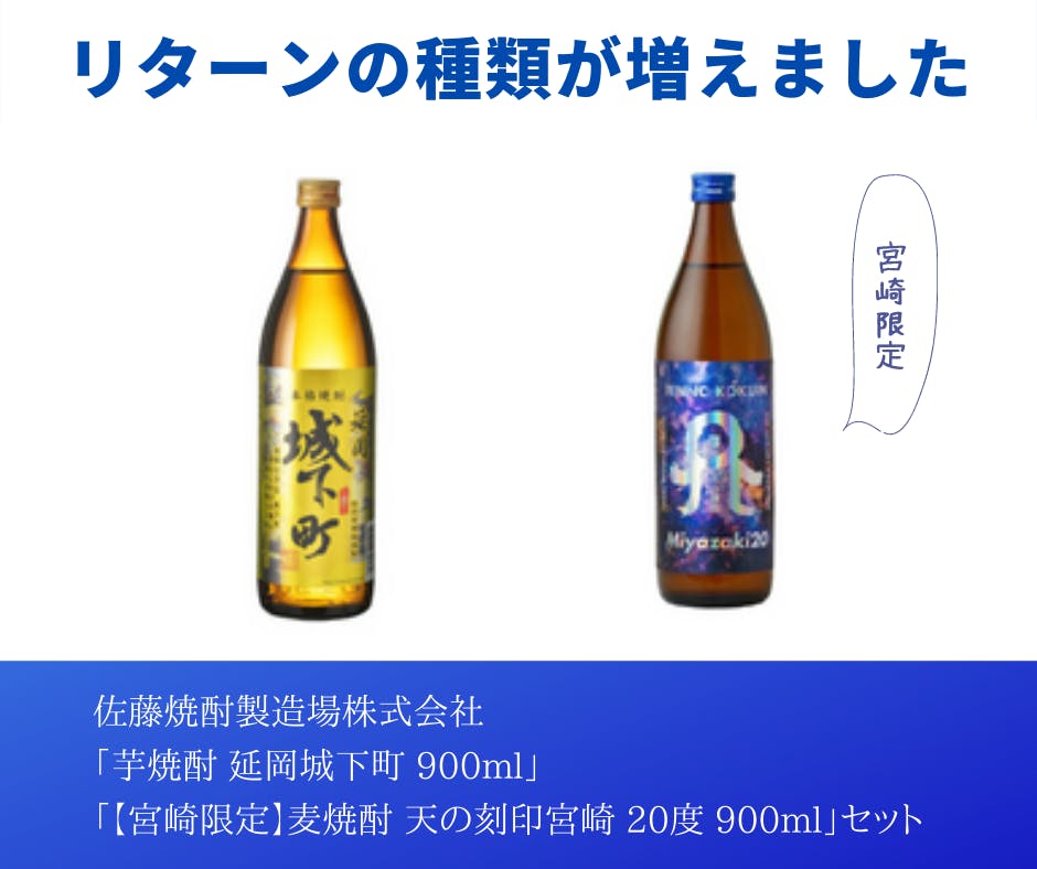 「【宮崎限定】麦焼酎 天の刻印宮崎 20度 900ml」の2本セットです。