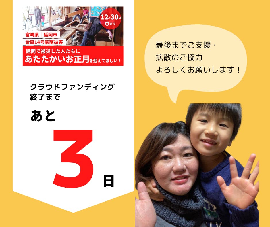 これまでご支援いただいた皆さま、ありがとうございます。物価の高騰が続き、また年の瀬で何かと物入りな中、皆さまのあたたかいお気持ちを分けてくださったことが、被災して今も大変な思いをされている方にもきっと届くと思います。