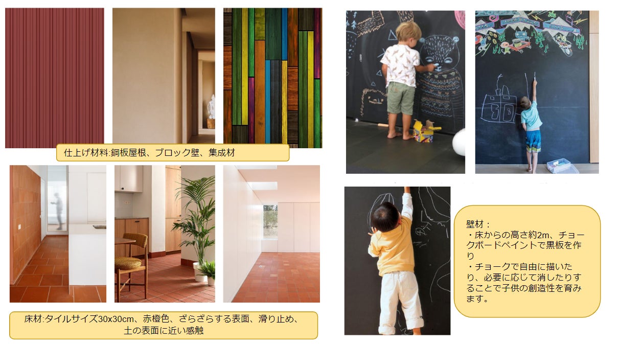 ・イメージ:子供たちの知的好奇心を刺激するために、暖かく、開放的で、カラフルな空間を出すデザイン