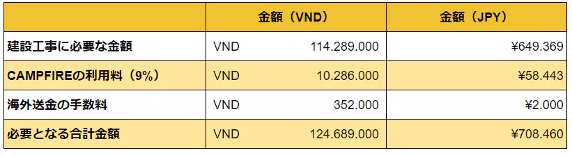 **目標金額(708,460円)の資金使途: