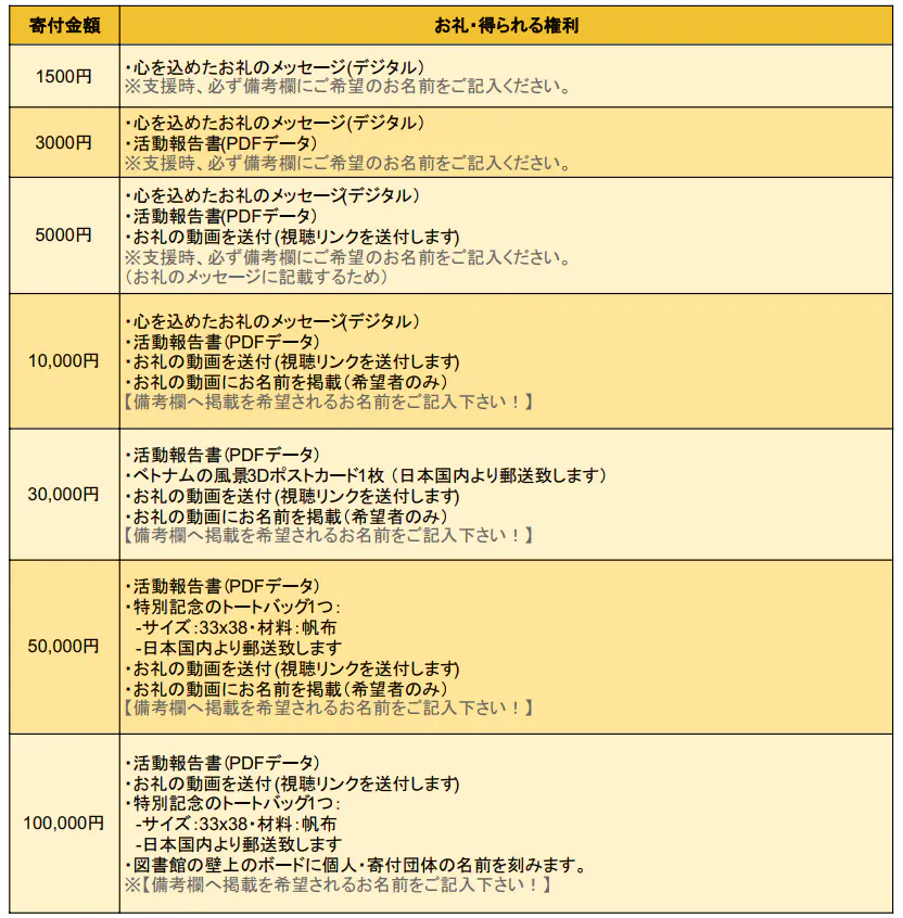 皆様からいただく支援金で実現できること: