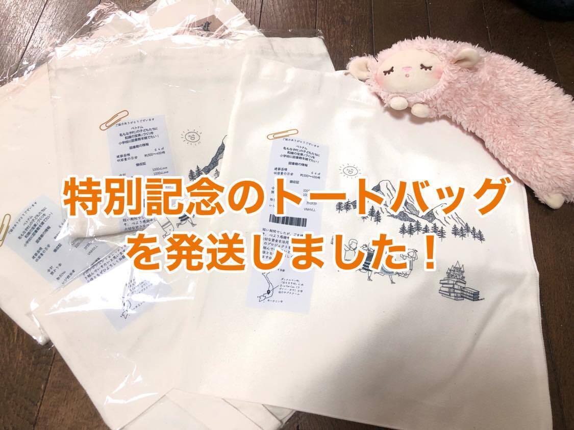 Hôm nay, chúng mình đã gửi đi những chiếc túi Tote đặc biết dành cho các mạnh thường quân đã ủng hộ dự án với số quỹ trên 50000 Yên. Những chiếc túi sẽ sớm được gửi đến tay các bạn, mong các bạn hãy chờ đợi thêm một chút nữa nhé ^^