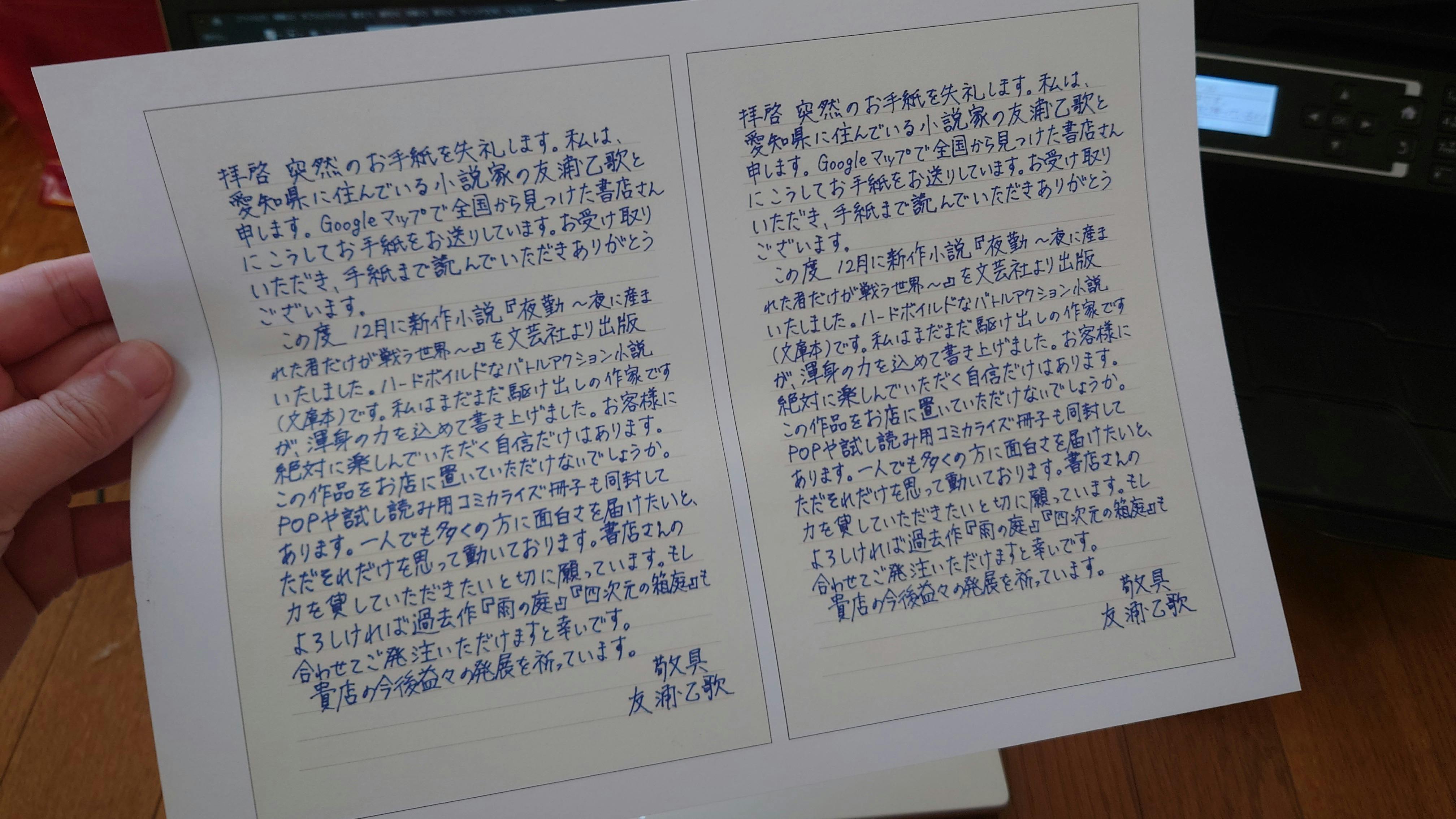 私はもっと、書店さんの力を借りたい。手紙をもっともっと出してみたい。そう思いました!!