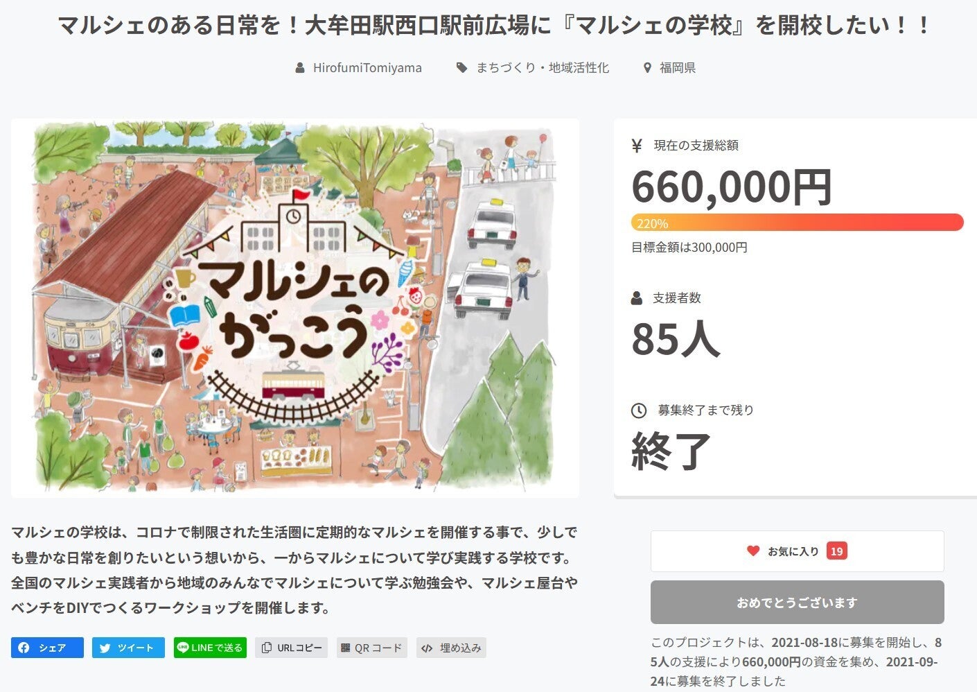 「マルシェのがっこう」は、令和3年に、皆様からクラウドファンディング220%のご支援を頂き、スタートした企画です。