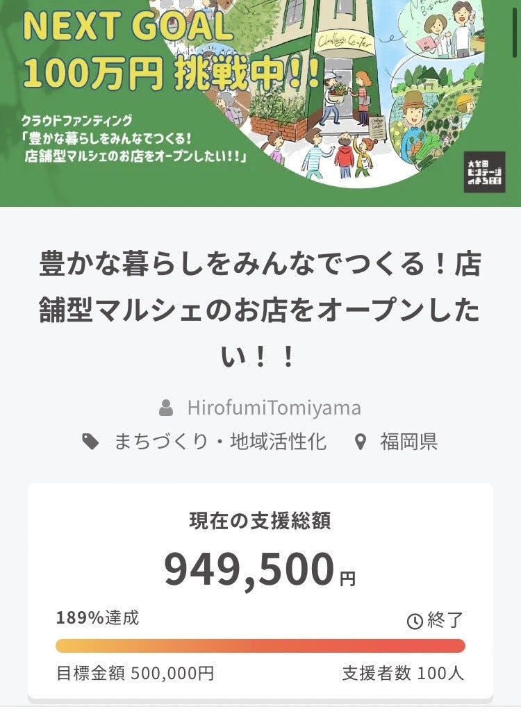 ラスト1日からの追い上げで、100名の方にご支援頂き、色んな方に支えて頂き、応援して頂いていることへの実感と感謝の気持ちでいっぱいになりました。