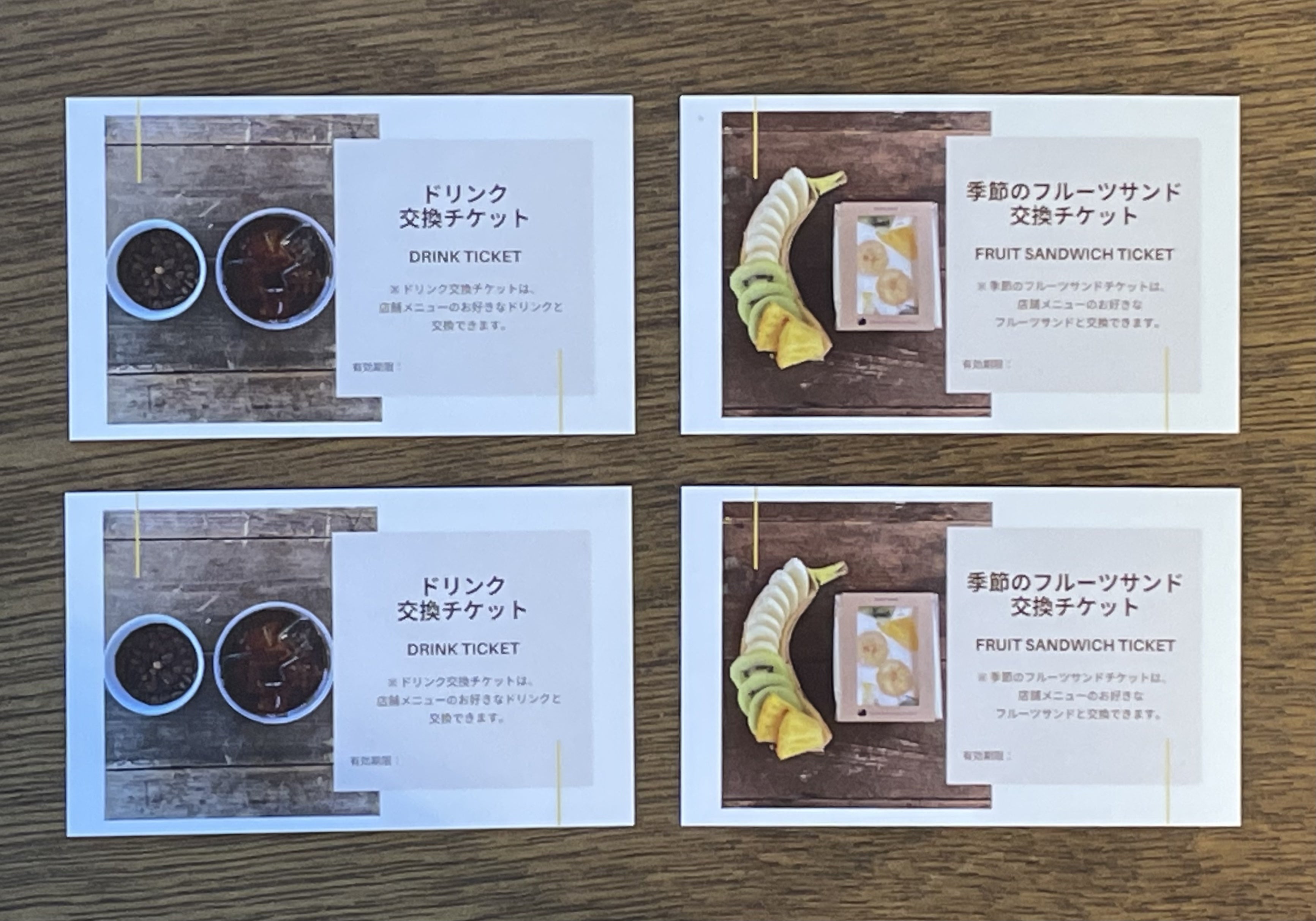 リターンの一つ「ドリンク交換チケット」「季節のフルーツサンド交換チケット」の印刷が出来上がってきました♪