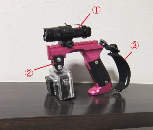 公開から一週間経ちました。あと二人で目標達成です! 引き続きご支援お待ちしております。 今日のカスタムパーツご紹介は アクションカメラとライトを搭載した例です。 これで夜道も怖くない!夜のウォーキングや夜間撮影にもぴったり! 万が一のトラブルもウォーキングレコーダーでしっかり保存! ①タクティカルライト http://amzn.asia/0piwb65 ②アクションカメラマウント http://amzn.asia/154I5cE アクションカメラの接続にこのプラスチックマウントがおすすめです ③グリップストラップ 前回のカスタムパーツご紹介を参考して下さい。